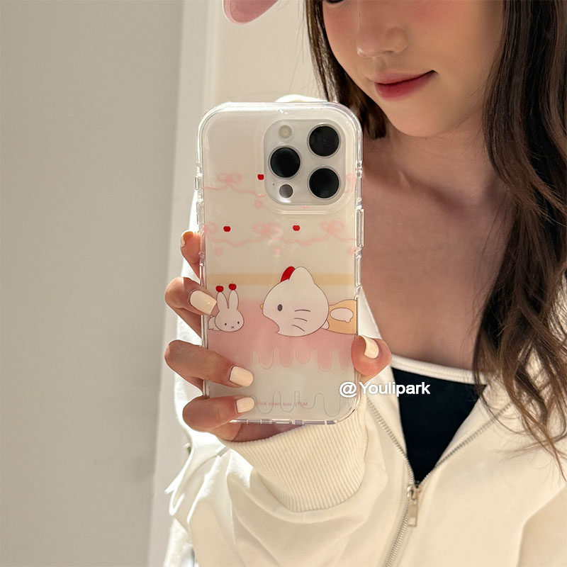 由里公园ins可爱少女蝴蝶结米菲兔猫咪15适用16pro苹果16ProMax手机壳iPhone16全包14新款14Promax保护套13韩