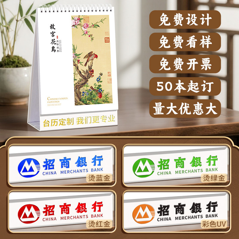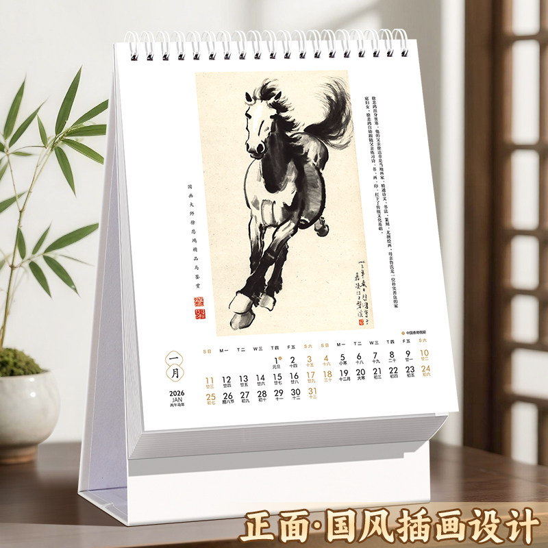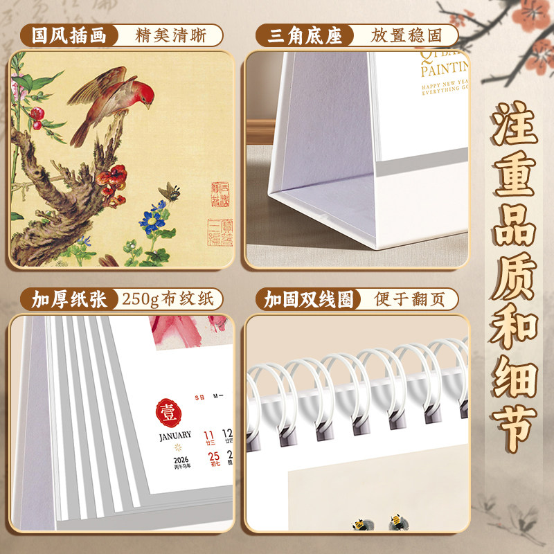 古风高架台历2026年新款定制创意桌面摆件月历中国风内页插画马年工作计划本定做企业广告logo记事本日历设计