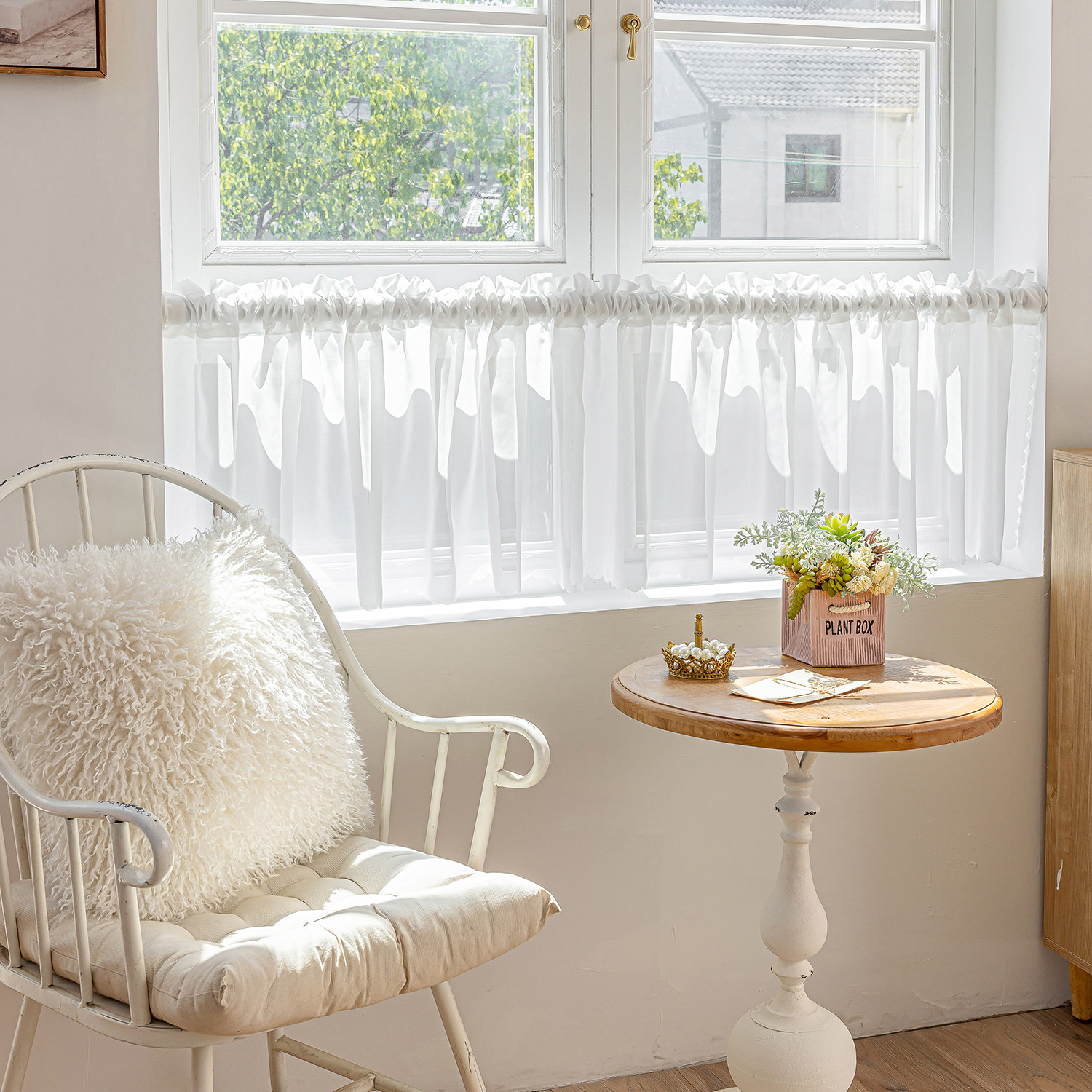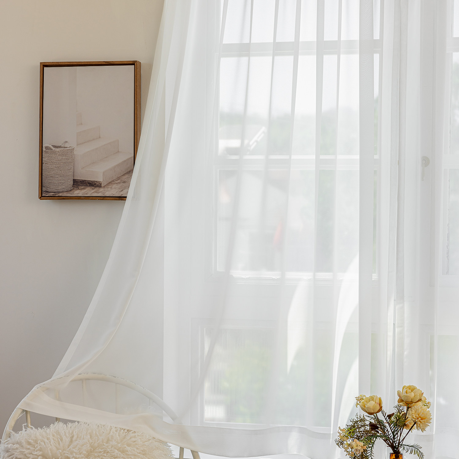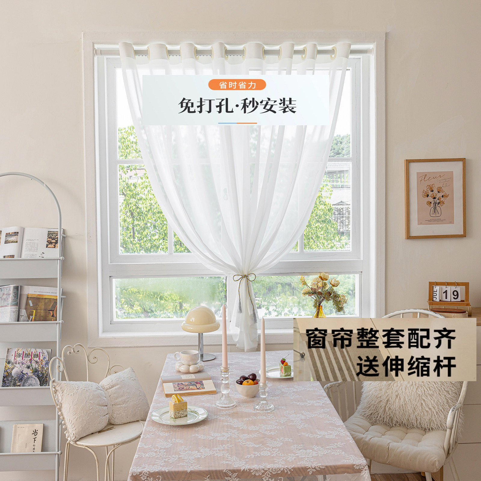 白色纱帘窗帘免打孔安装送伸缩杆卧室阳台门帘隔断一整套客厅窗户