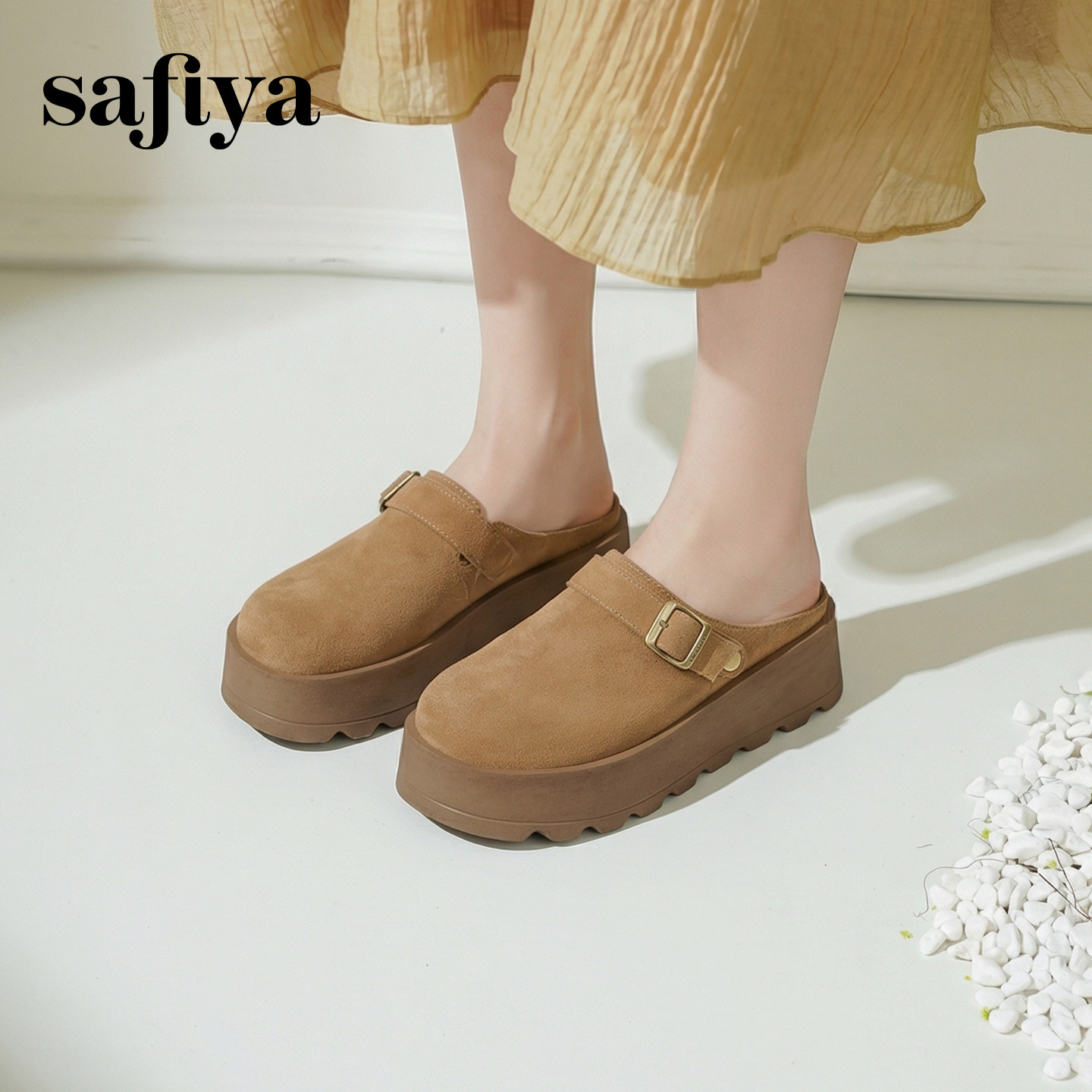牛皮~内增高厚底拖鞋女夏外穿一脚蹬懒人鞋包头半拖小个子勃肯鞋