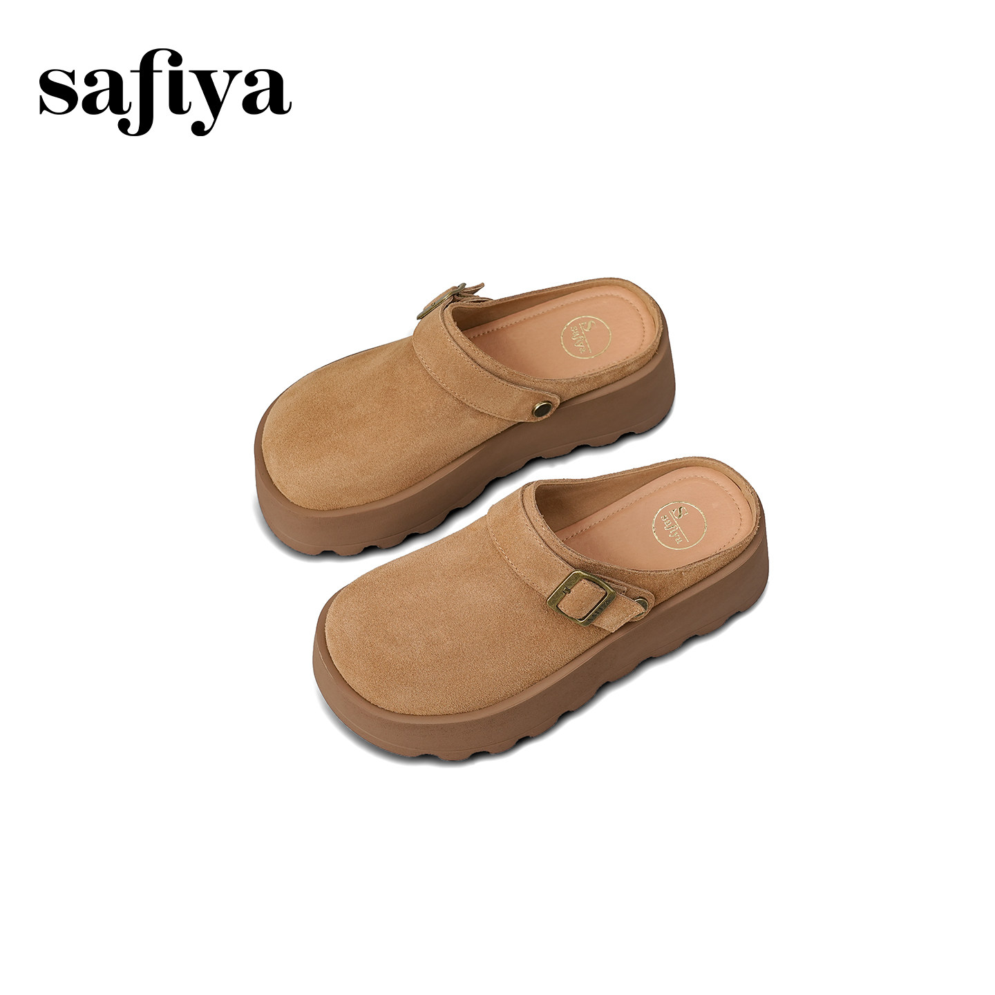 索菲娅2026春季新品一脚蹬包头懒人外穿百搭厚底包头勃肯鞋拖鞋女