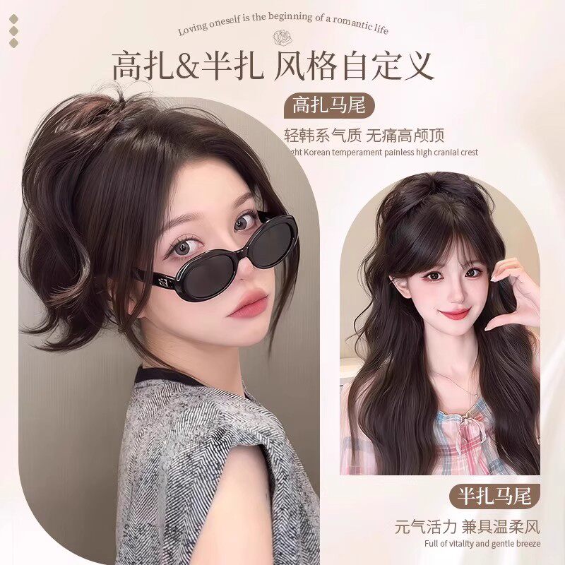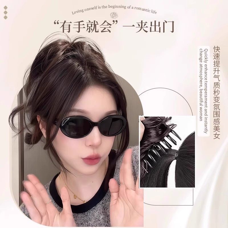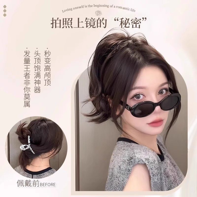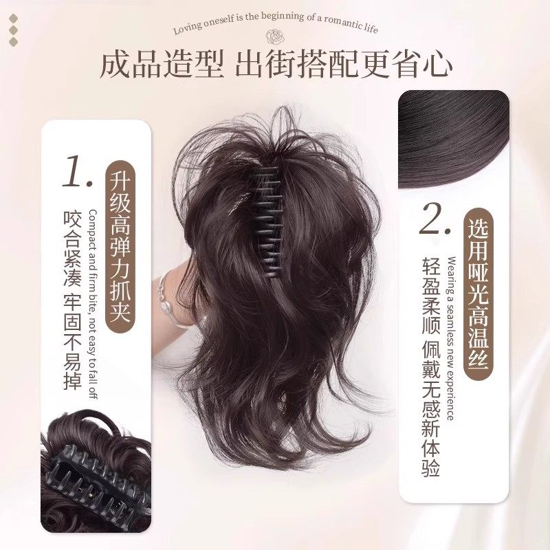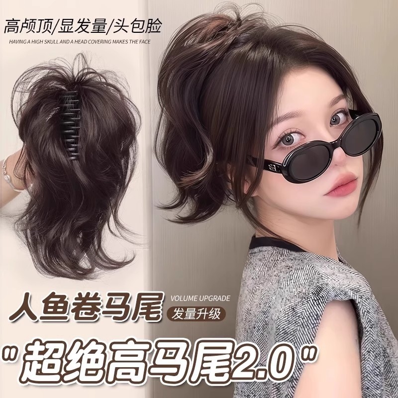 人鱼卷高颅顶增发马尾假发抓夹式辣妹御姐蓬松短辫子造型真发黑色