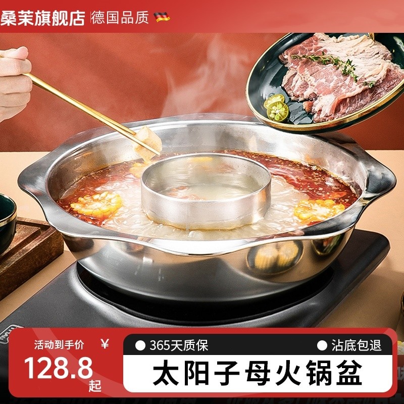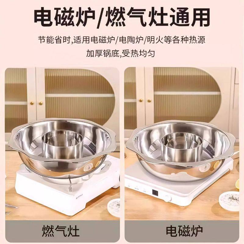 不锈钢子母鸳鸯锅家用电磁炉专用火锅锅具中锅大容量中间圆字母锅