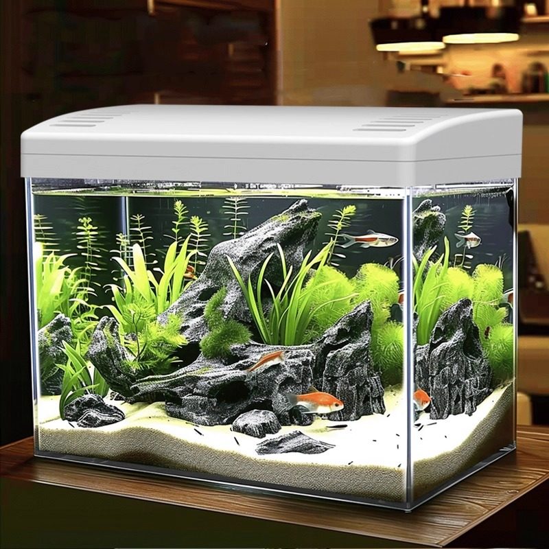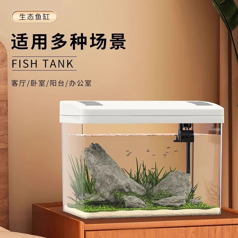 鱼缸新款带盖小型桌面客厅高清透明金鱼斗鱼造景缸过滤制氧一体机