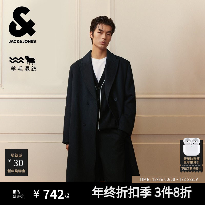 杰克琼斯毛呢柴斯特大衣静奢羊髦长款外套羊毛混纺宽松外套男装