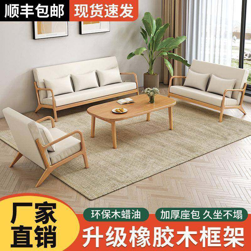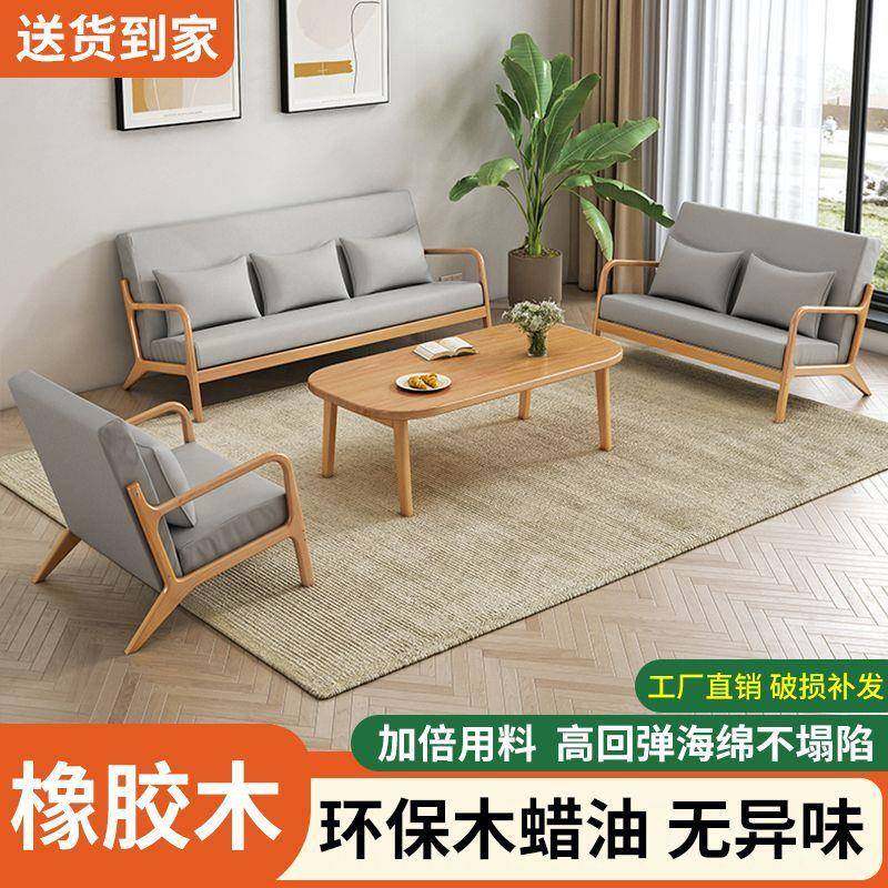 三人家用布艺现代简约双人沙发小户型出租屋实木沙发茶几组合客厅