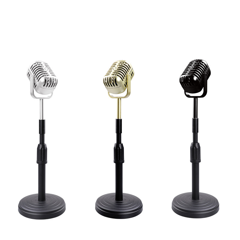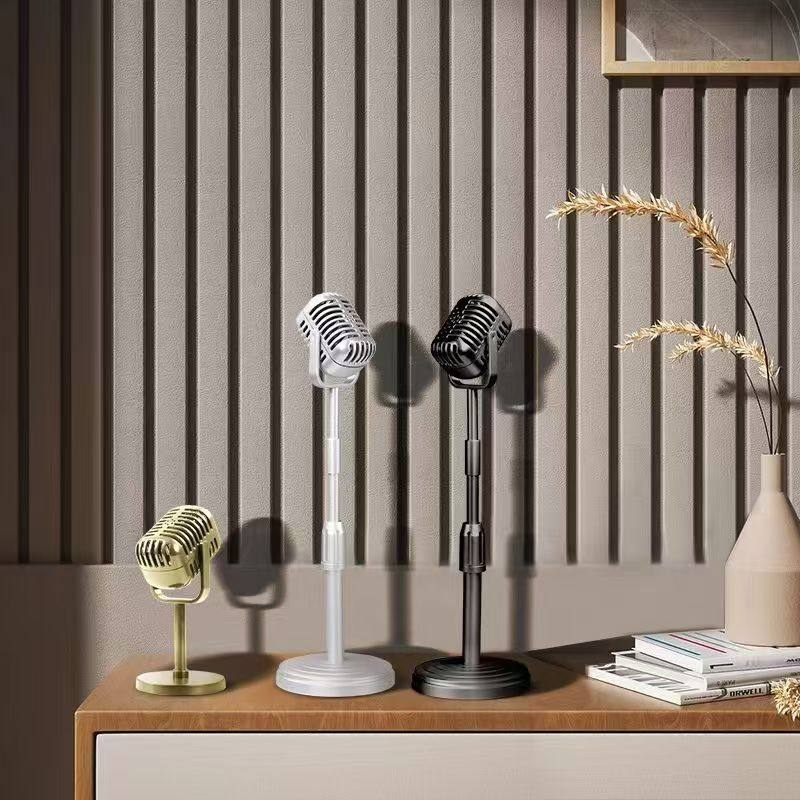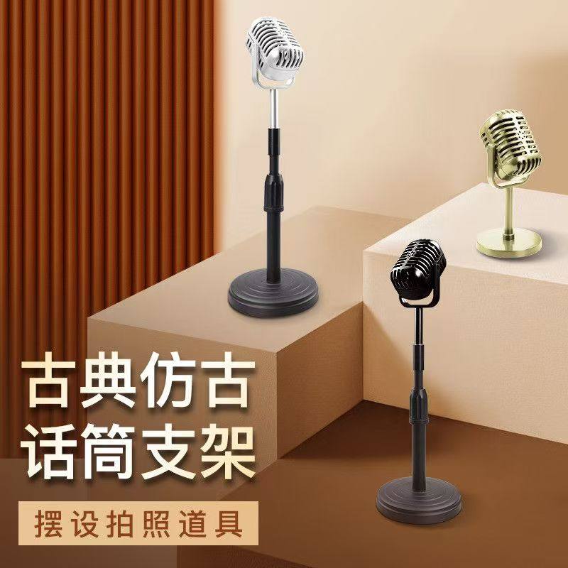 道具麦克风桌面摆设装饰仿真复古假话筒立麦塑料金色迷你可升降