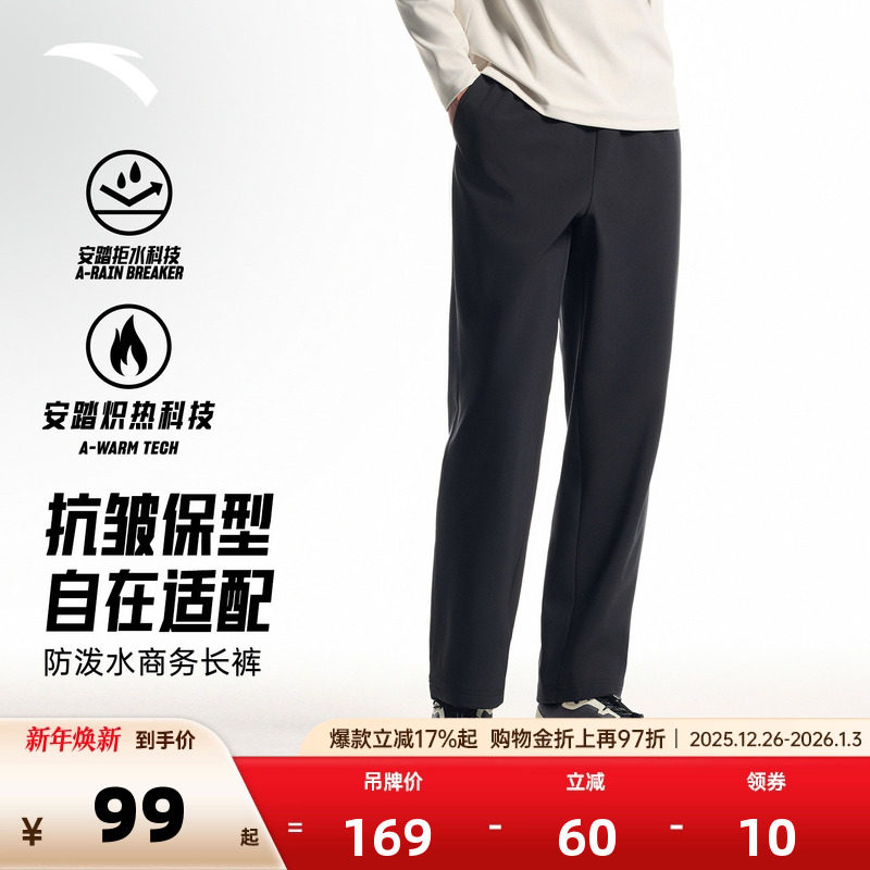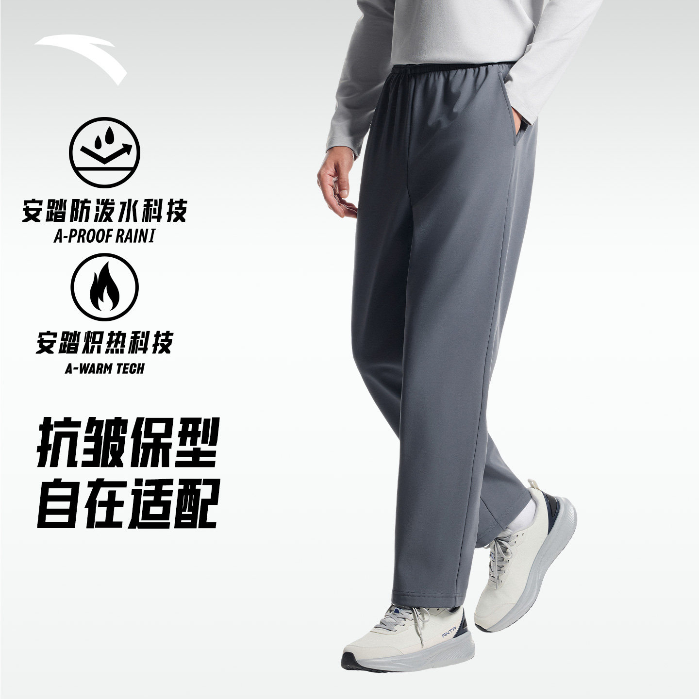 安踏防泼水加绒运动长裤男款冬季弹力跑步训练直筒裤休闲裤