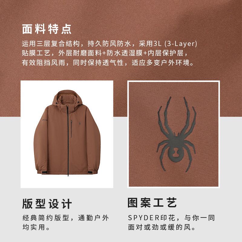 SPYDER蜘蛛秋冬男子防风防水耐磨短款3L连帽棉服运动外套25EF247M