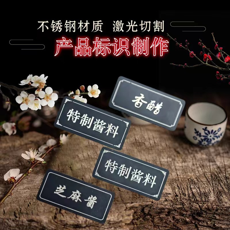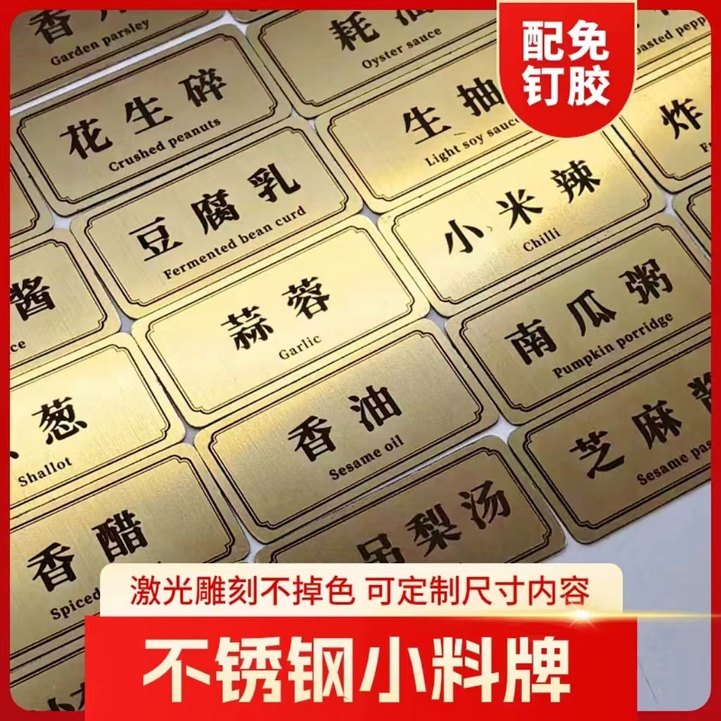 标识牌不锈钢金属调料牌支持定制激光雕刻打印不褪色标记牌带背胶商品铭牌定做标贴自助餐厅火锅小料标签