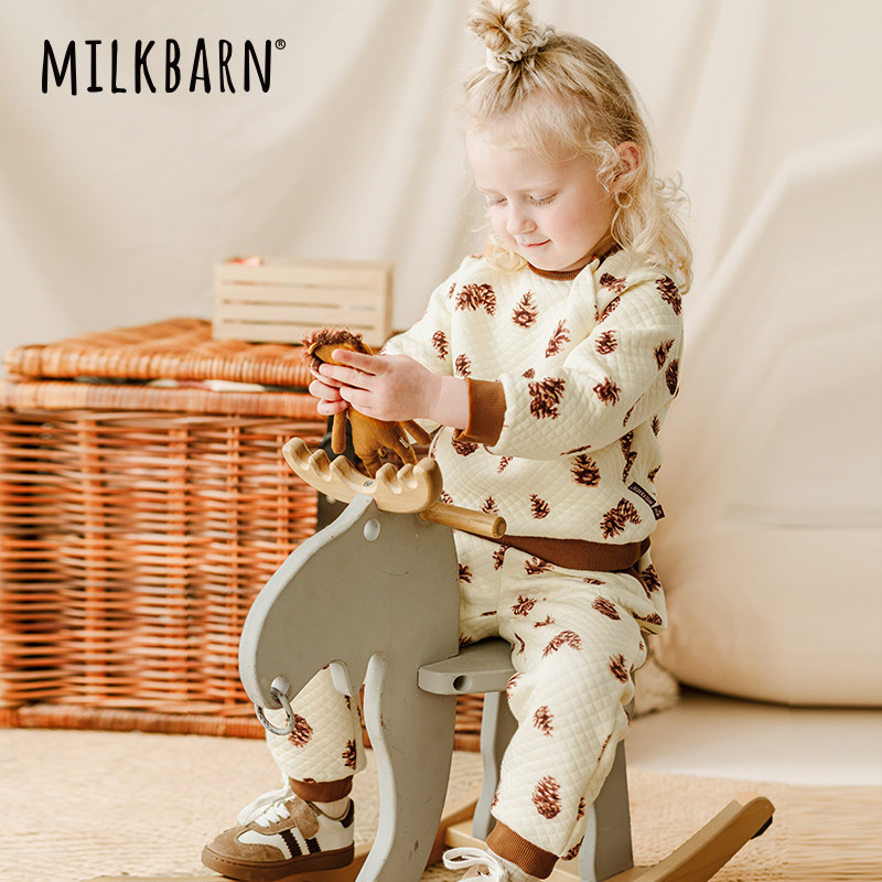 Milkbarn秋冬新品儿童套装宝宝加厚衣服男女童秋冬家居服童装