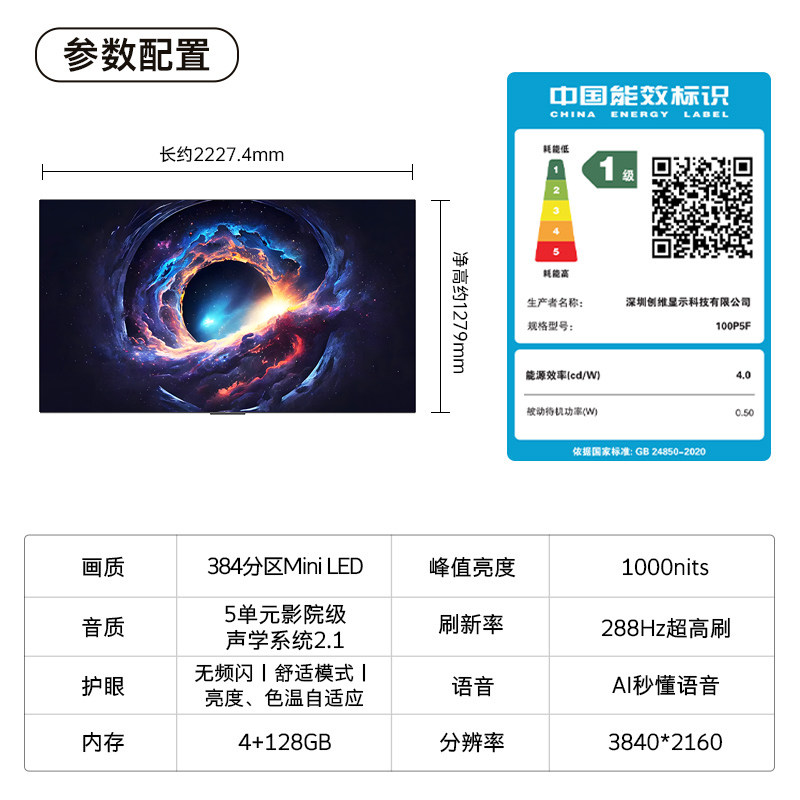 【爆款回归】创维酷开Max100英寸爆款高刷大内存MiniLED电视补20%