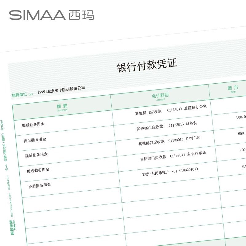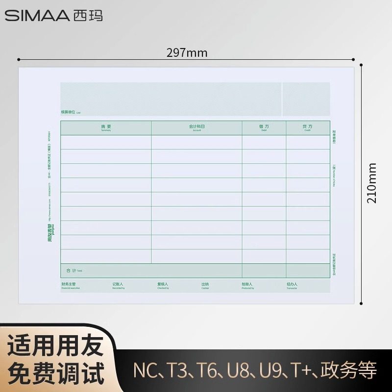 用友表单A4纸大小凭证纸 全A4金额记账凭证横版KPJ106H打印纸西玛表单凭证套打纸用友软件横向