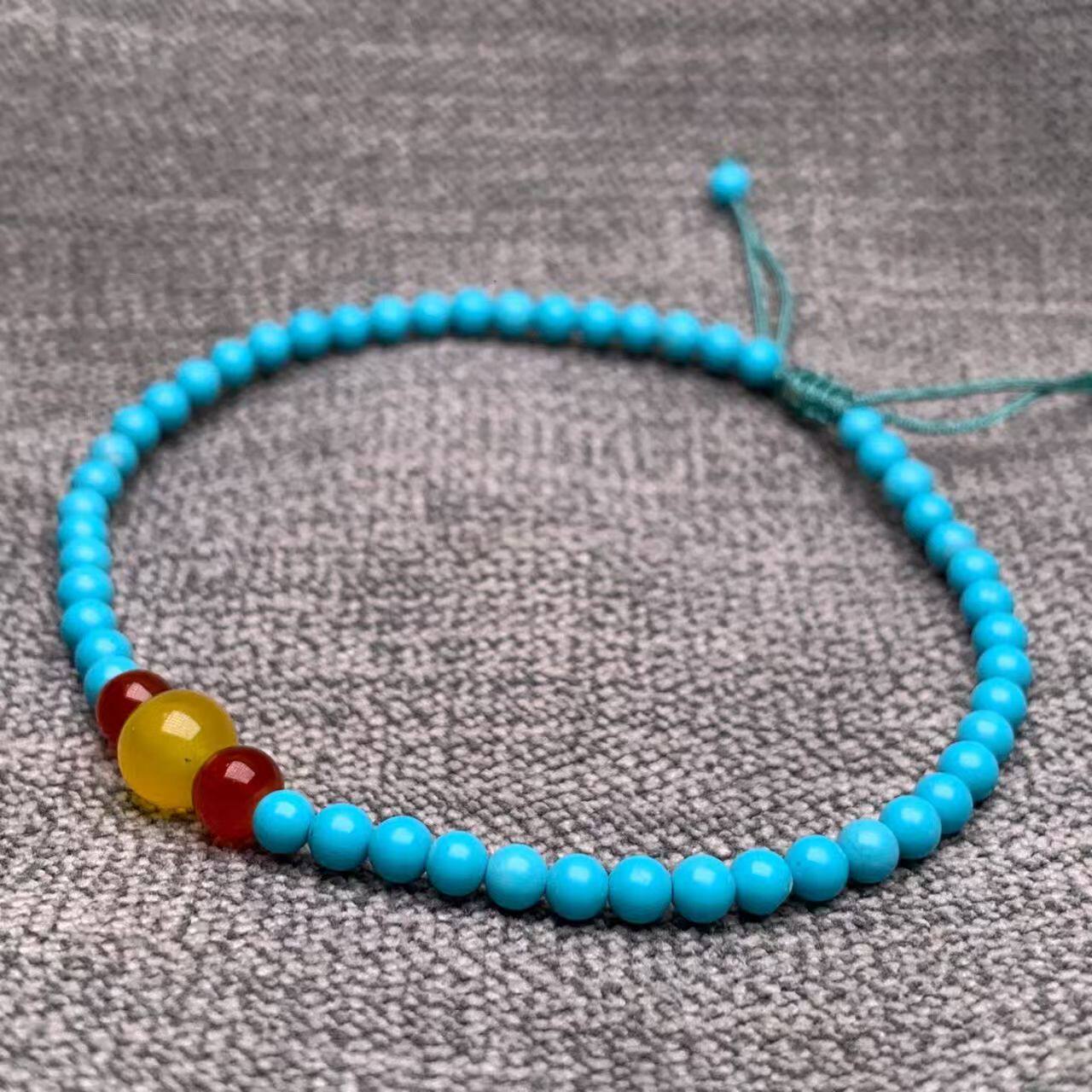 绿松石手串小米珠4mm极细单圈手链南红蜜蜡转运珠新中式国风手串