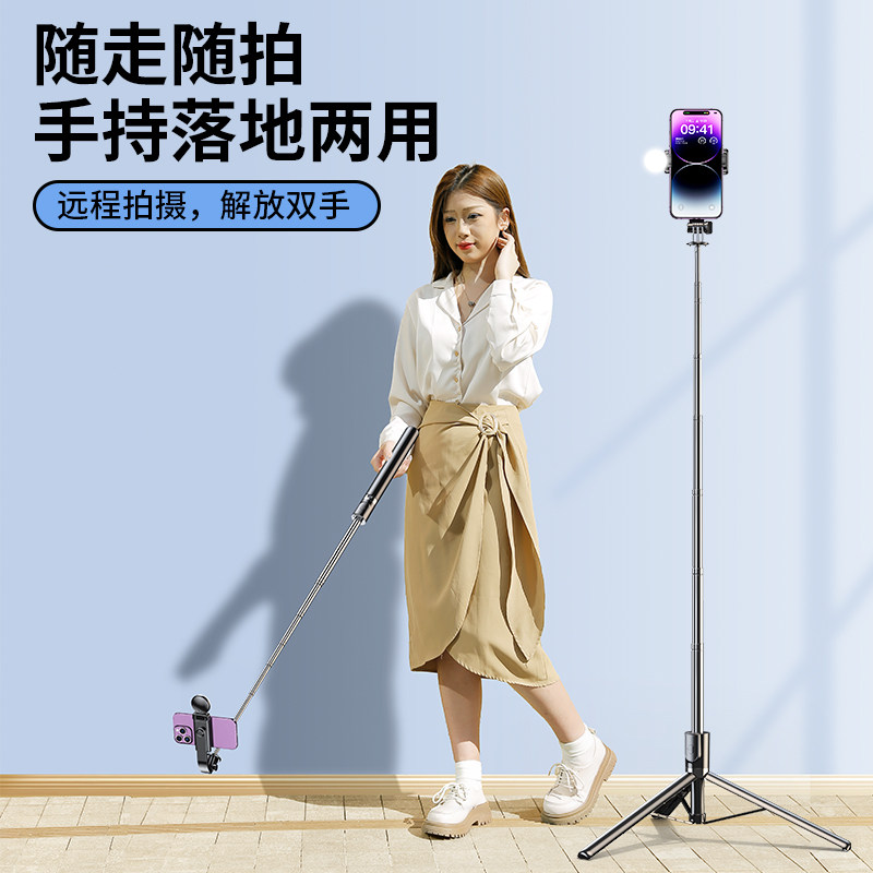 自拍杆投屏落地三脚架新款手机通用拍照录视频直播支架自拍神器蓝牙手持防抖便携外出旅游拍摄设备演唱会2025