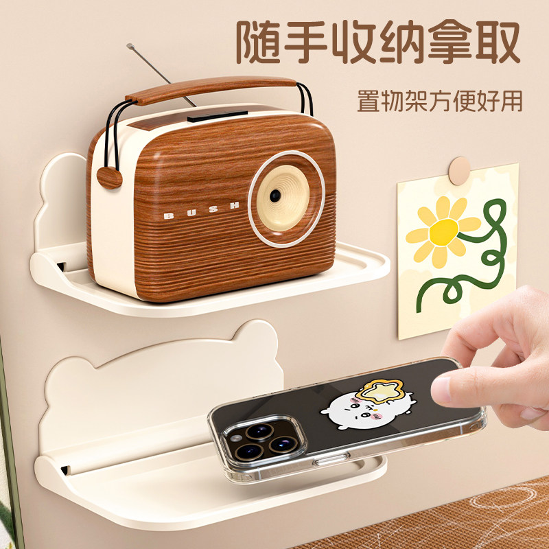 可折叠墙上置物架浴室卫生间床头手机免打孔宿舍收纳架机顶盒架