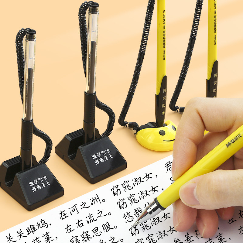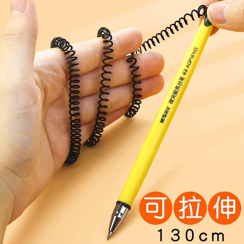 晨光台笔固定签字笔带线带绳电话中性笔粘桌粘在桌子上的笔酒店前台吧台银行柜台专用防丢笔神器桌面桌上水笔