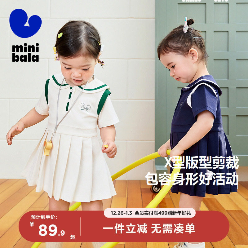 迷你巴拉巴拉女童连衣裙学院风儿童宝宝周岁裙子周岁演出夏季新款