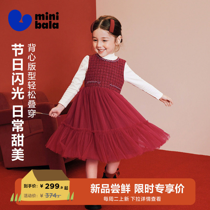 迷你巴拉女童裙子儿童小香风连衣裙拜年服网纱裙羊毛新年2026春