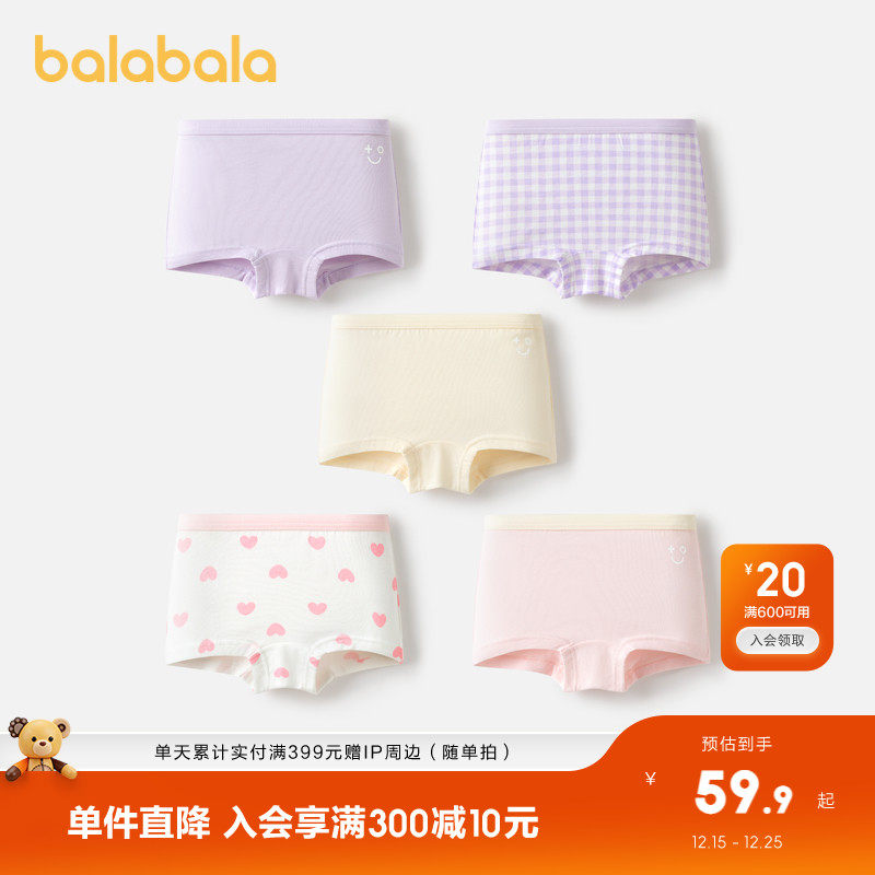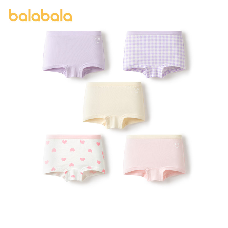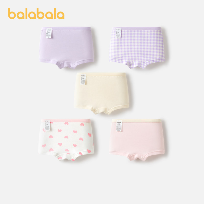 巴拉巴拉儿童内裤棉a类女童平角短裤小童中大童宝宝四角裤五条装