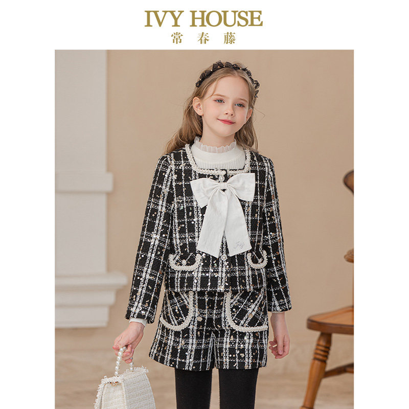 IVY HOUSE常春藤儿童装女童短裤秋季款 亮片小香风利落短裤亲子装