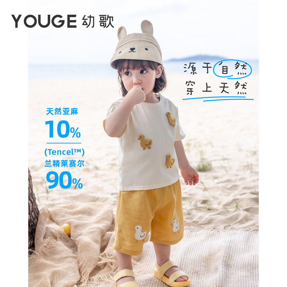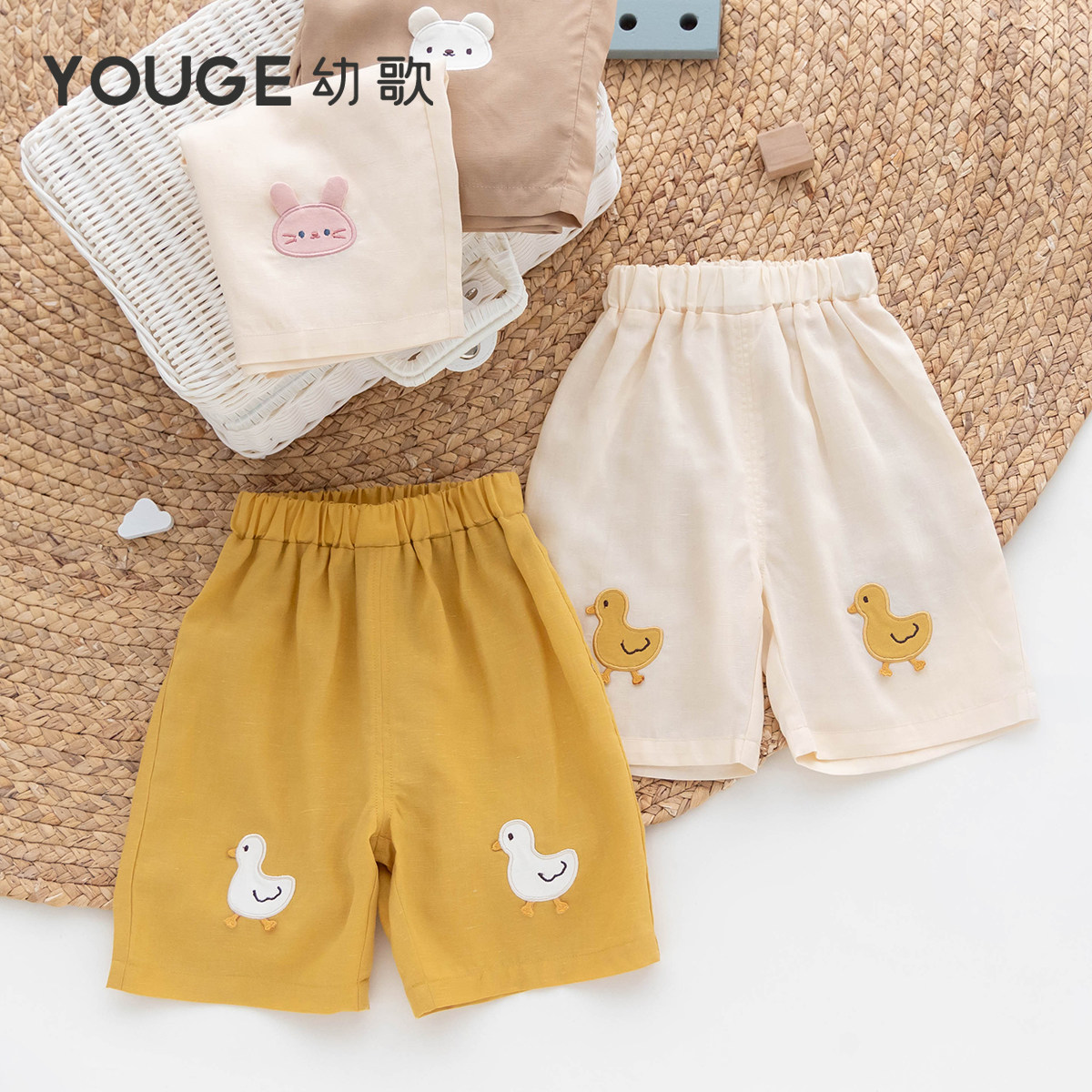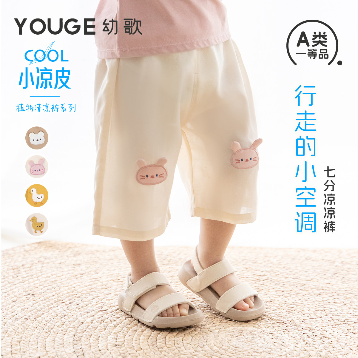 【小凉皮】YOUGE幼歌 夏季新款婴幼儿卡通舒适透气亚麻清凉七分裤