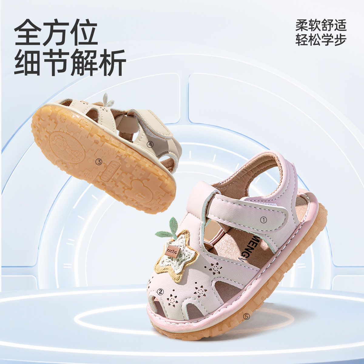婧麒宝宝凉鞋叫叫鞋1到3岁夏季新款女宝宝鞋子软底防滑透气室内鞋