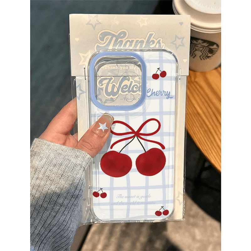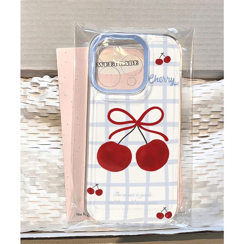 格纹樱桃苹果17手机壳16/15pro华为mate30适用p50荣耀70红米note13女OPPOreno11/9/8小米14/vivos12s7新款x80