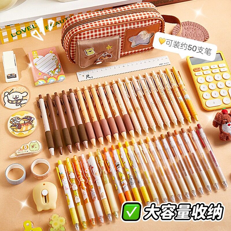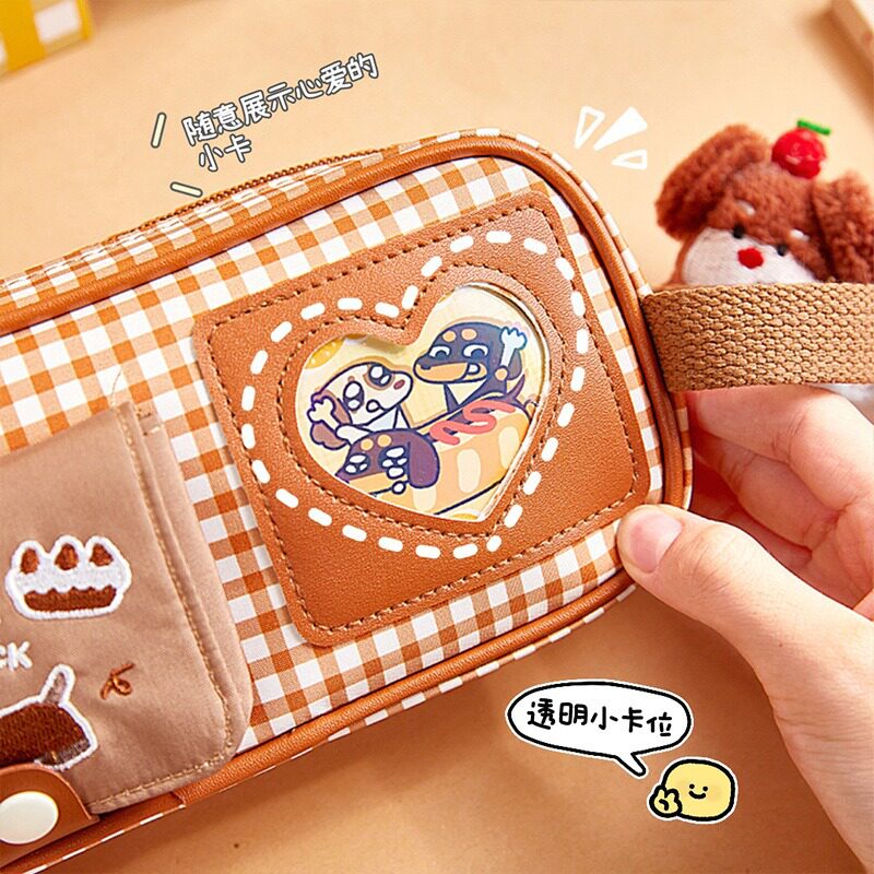 新款暖棕小狗大容量笔袋高颜值心学生多层分类文具袋收纳笔盒