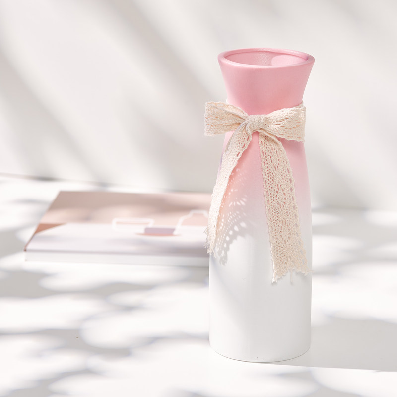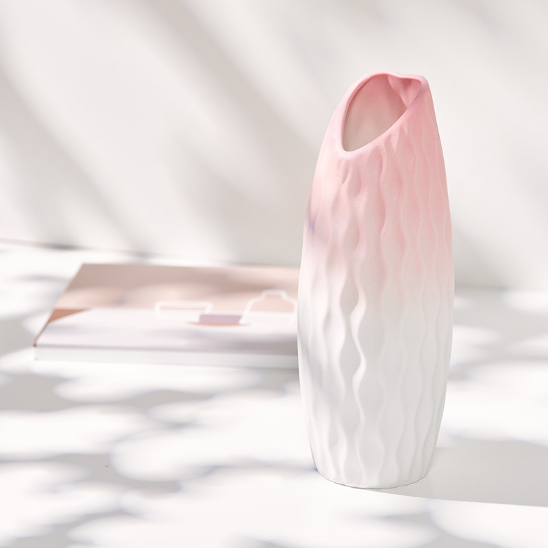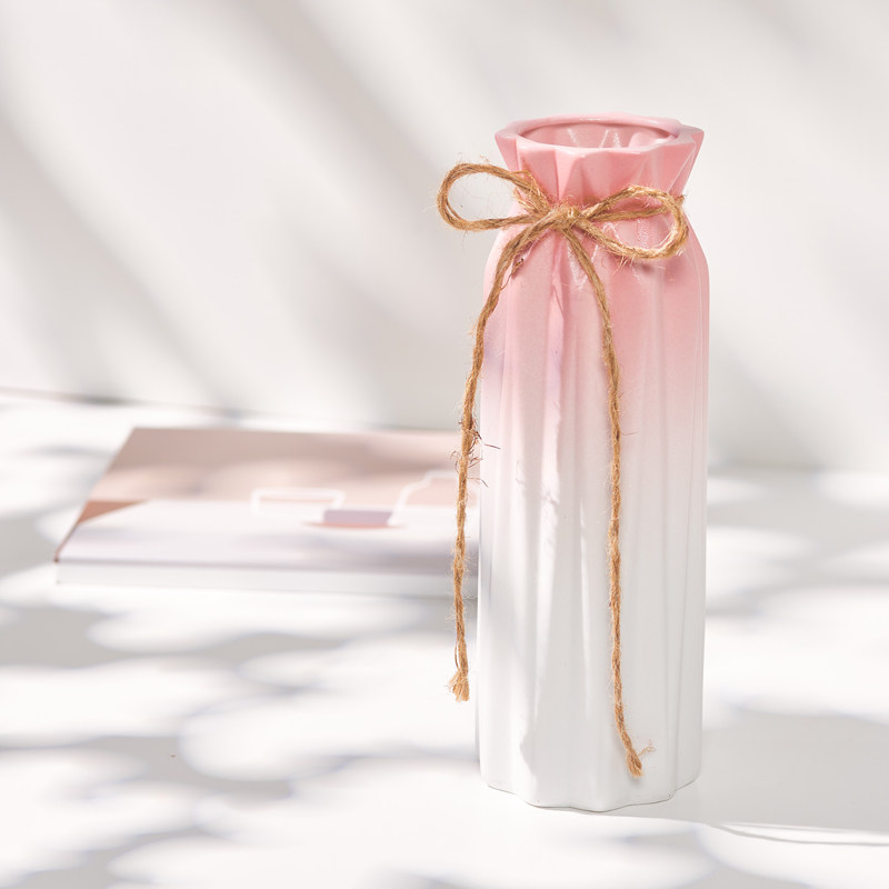 粉色渐变北欧风陶瓷花瓶水养家居装饰客厅干花鲜花插花办公室摆件