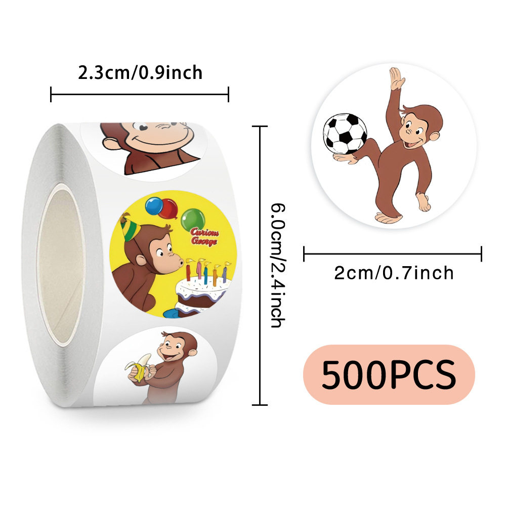 500贴/卷好奇乔治卷卷贴奖励贴纸跨境装饰水杯封口贴手账胶带