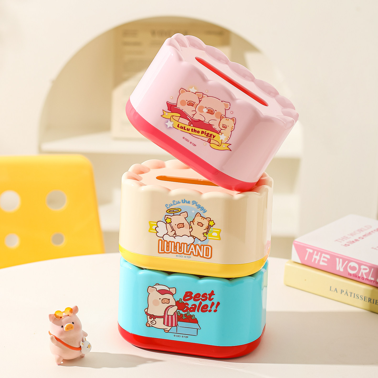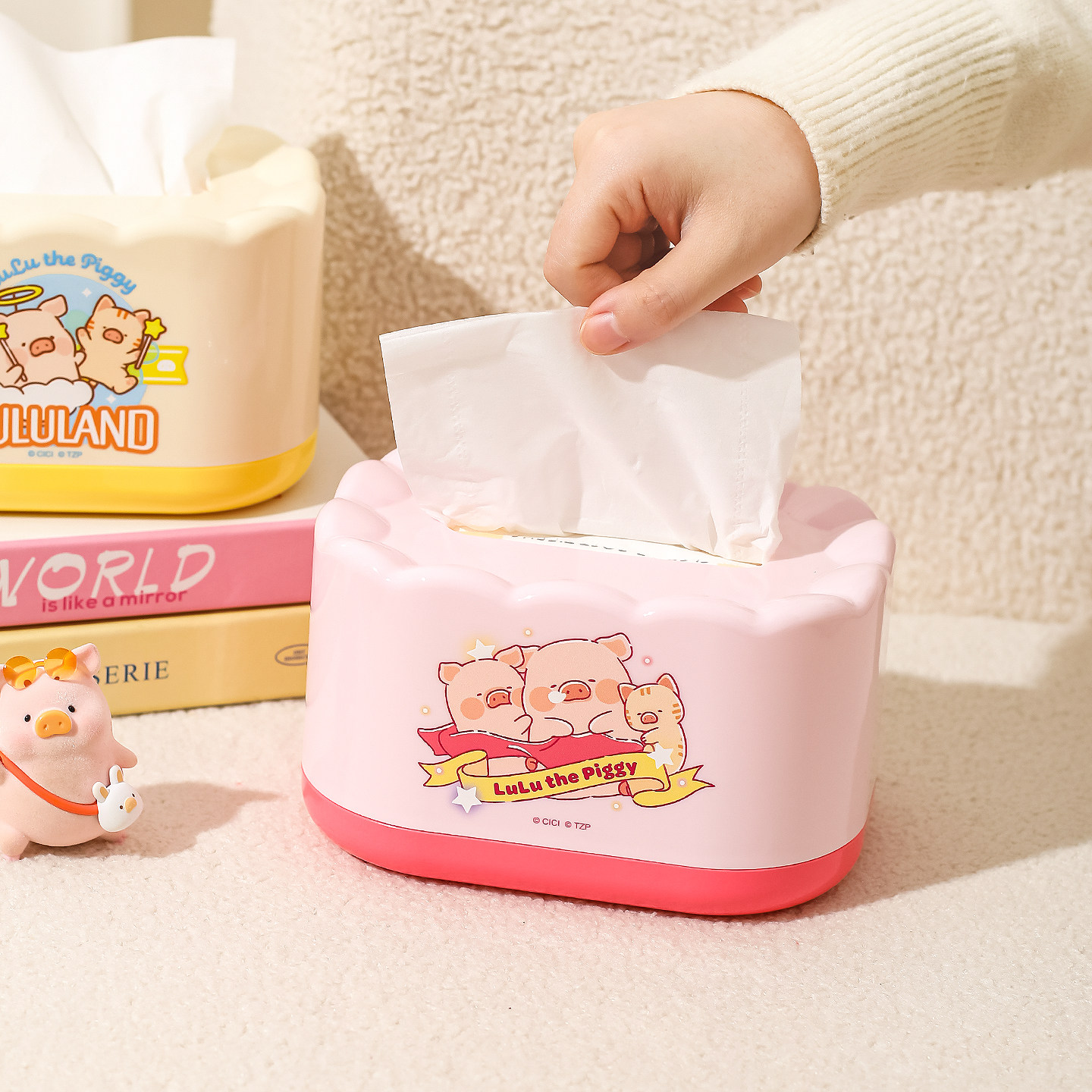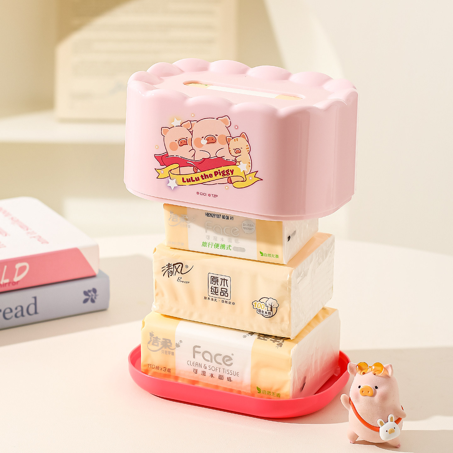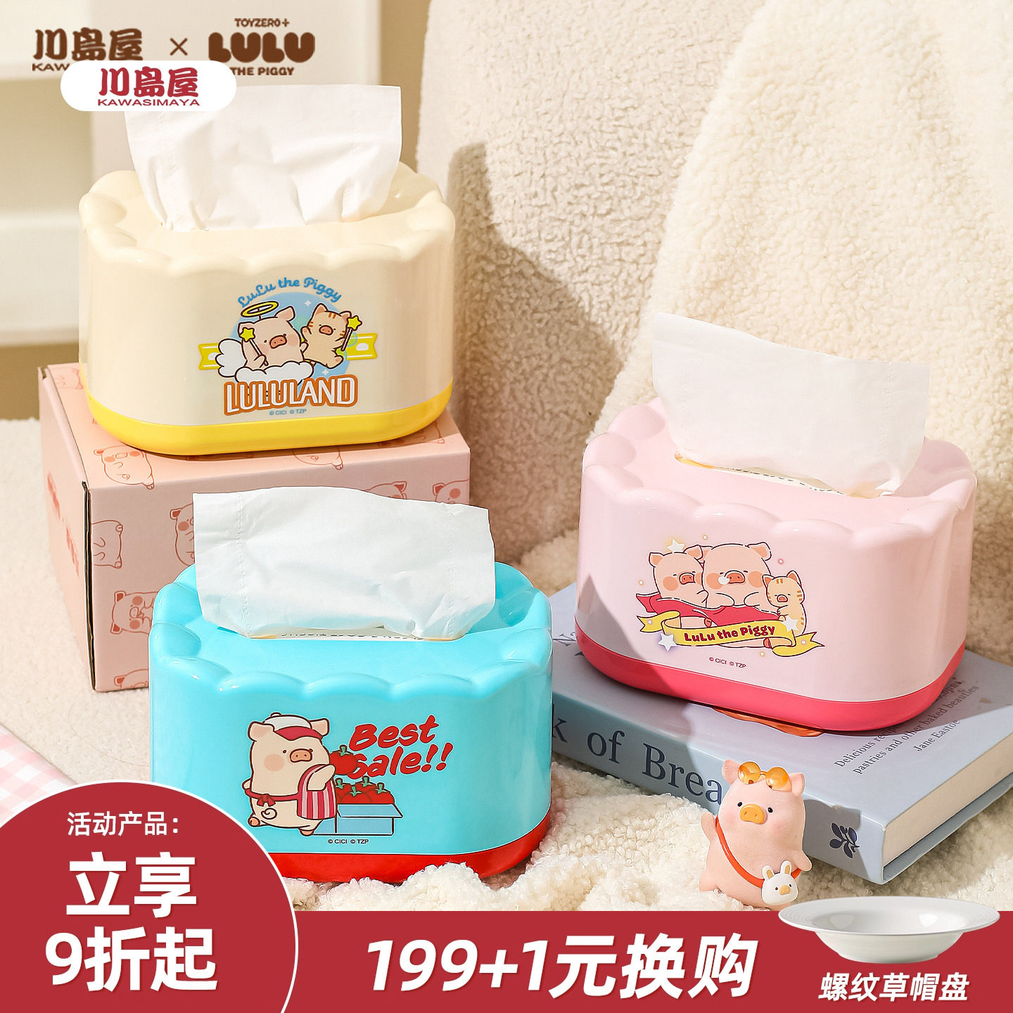 川岛屋&lulu猪联名 纸巾盒客厅抽纸盒家用桌面收纳盒餐巾纸抽盒子