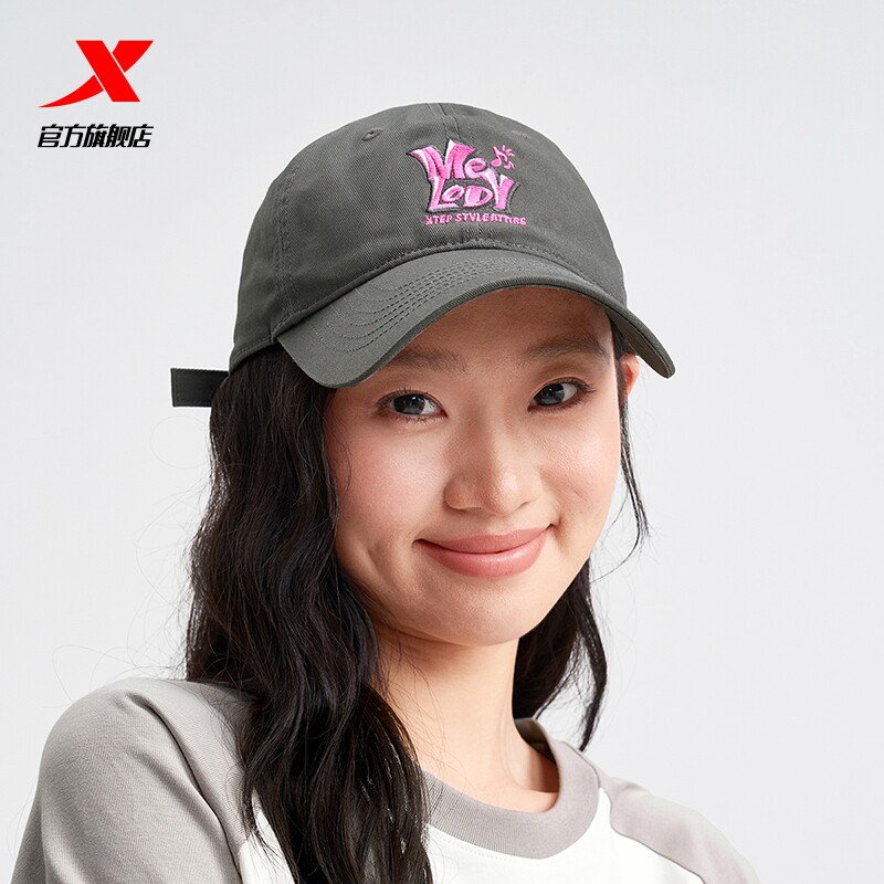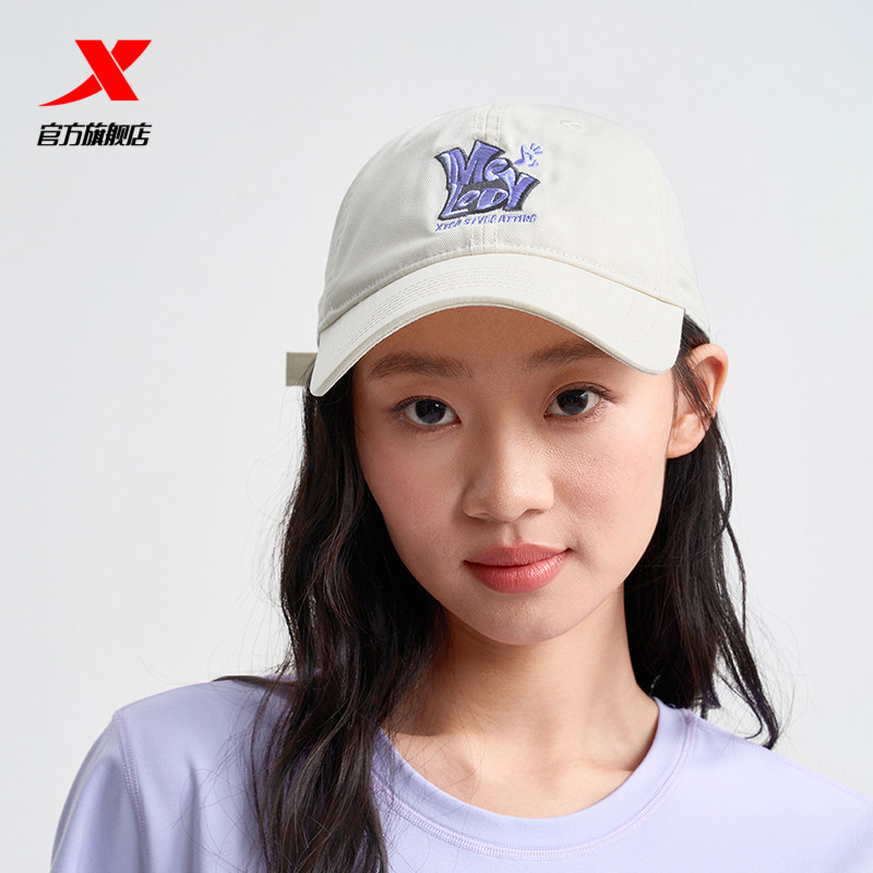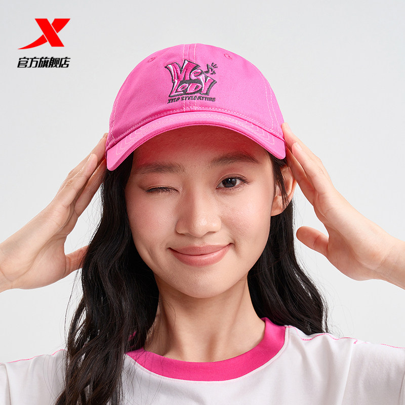 特步棒球帽女士遮阳帽休闲帽子撞色鸭舌帽字母防晒帽甜酷风运动帽