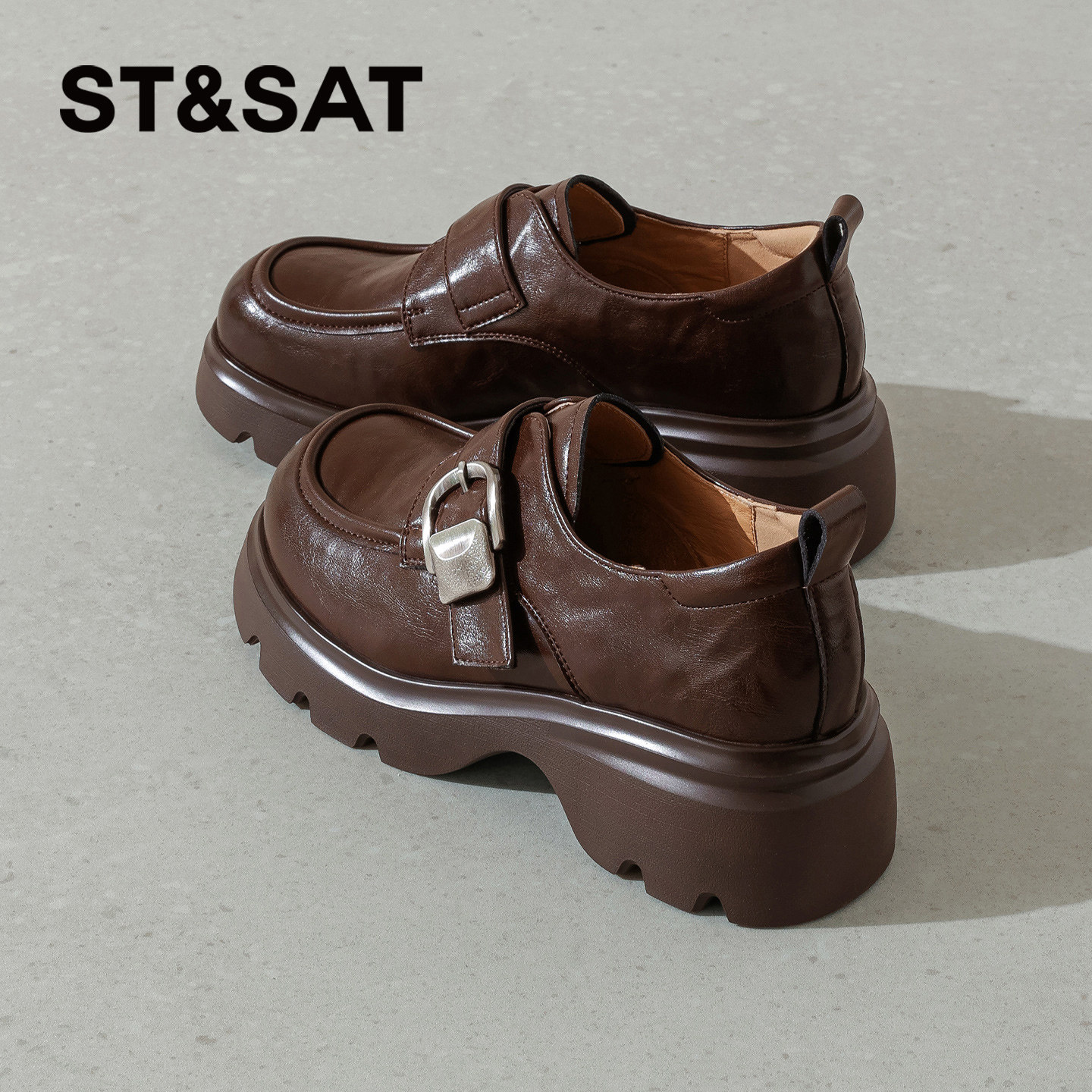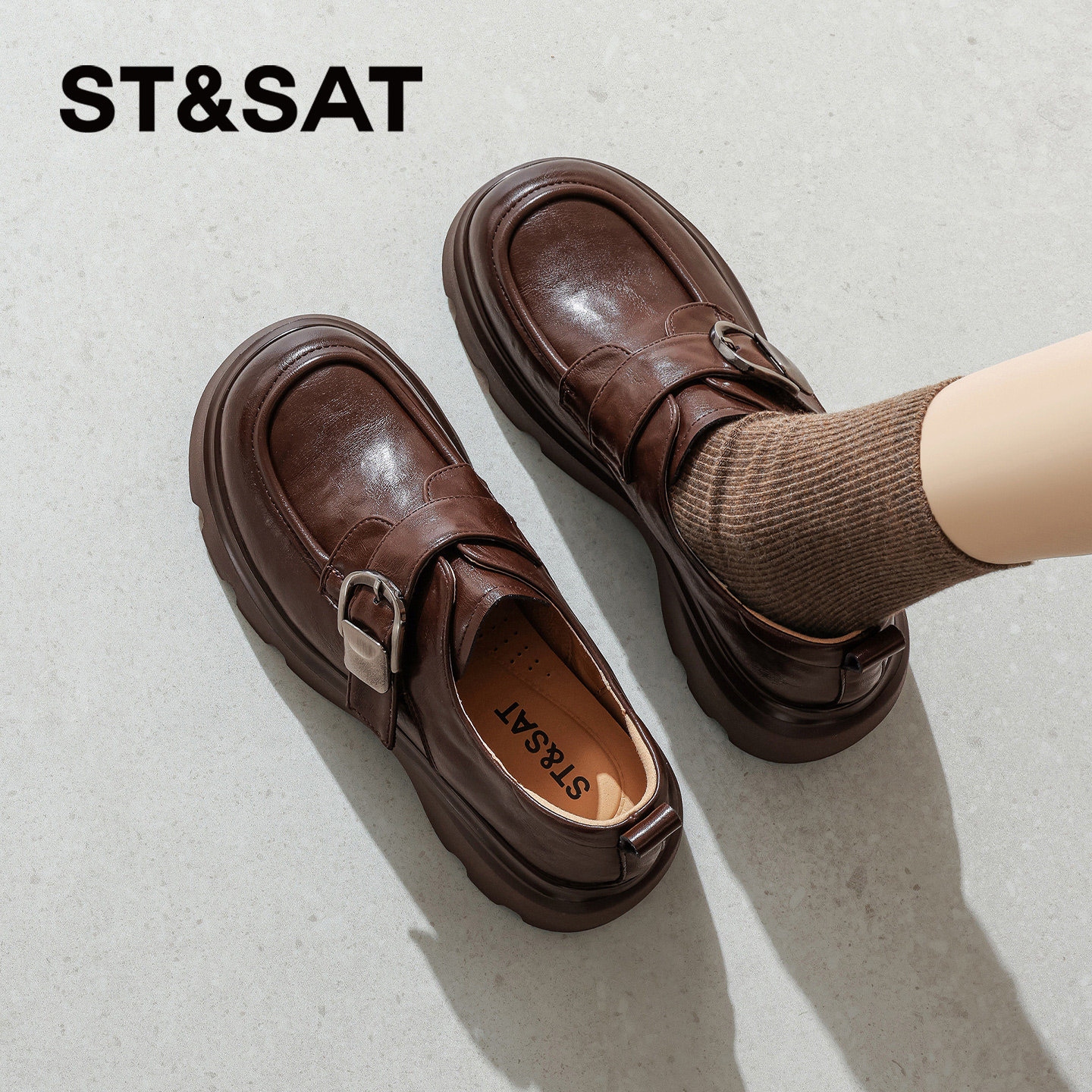 星期六厚底乐福鞋女2026春季新款皮带扣皮鞋休闲百搭通勤豆豆鞋女