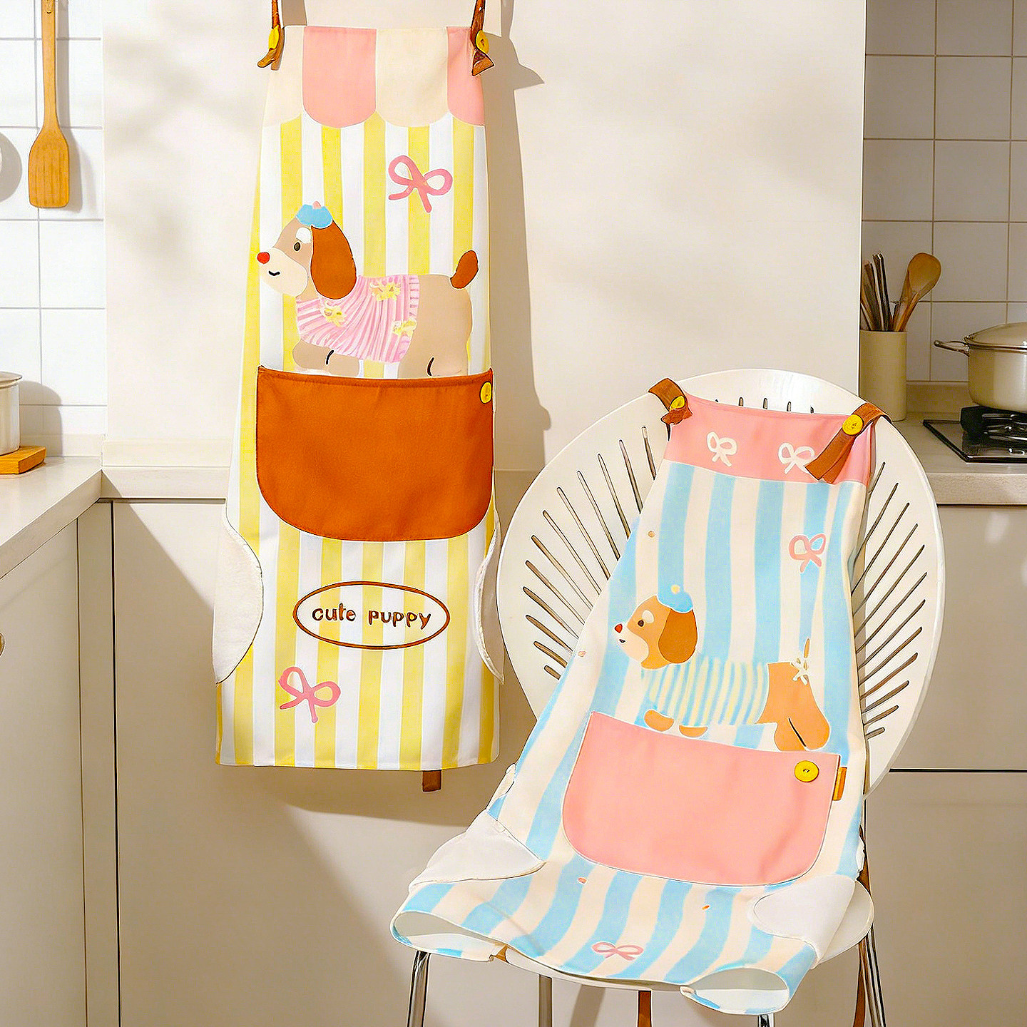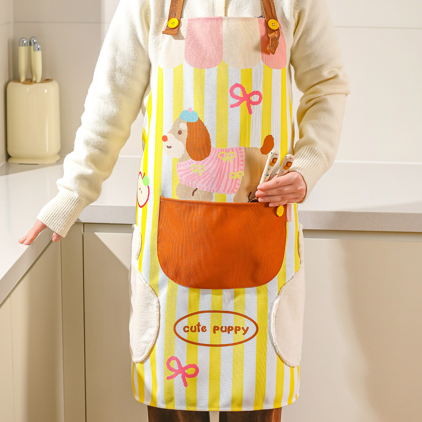 川岛屋可爱可擦手围裙厨房家用2026新款防水防油做饭围裙女高颜值