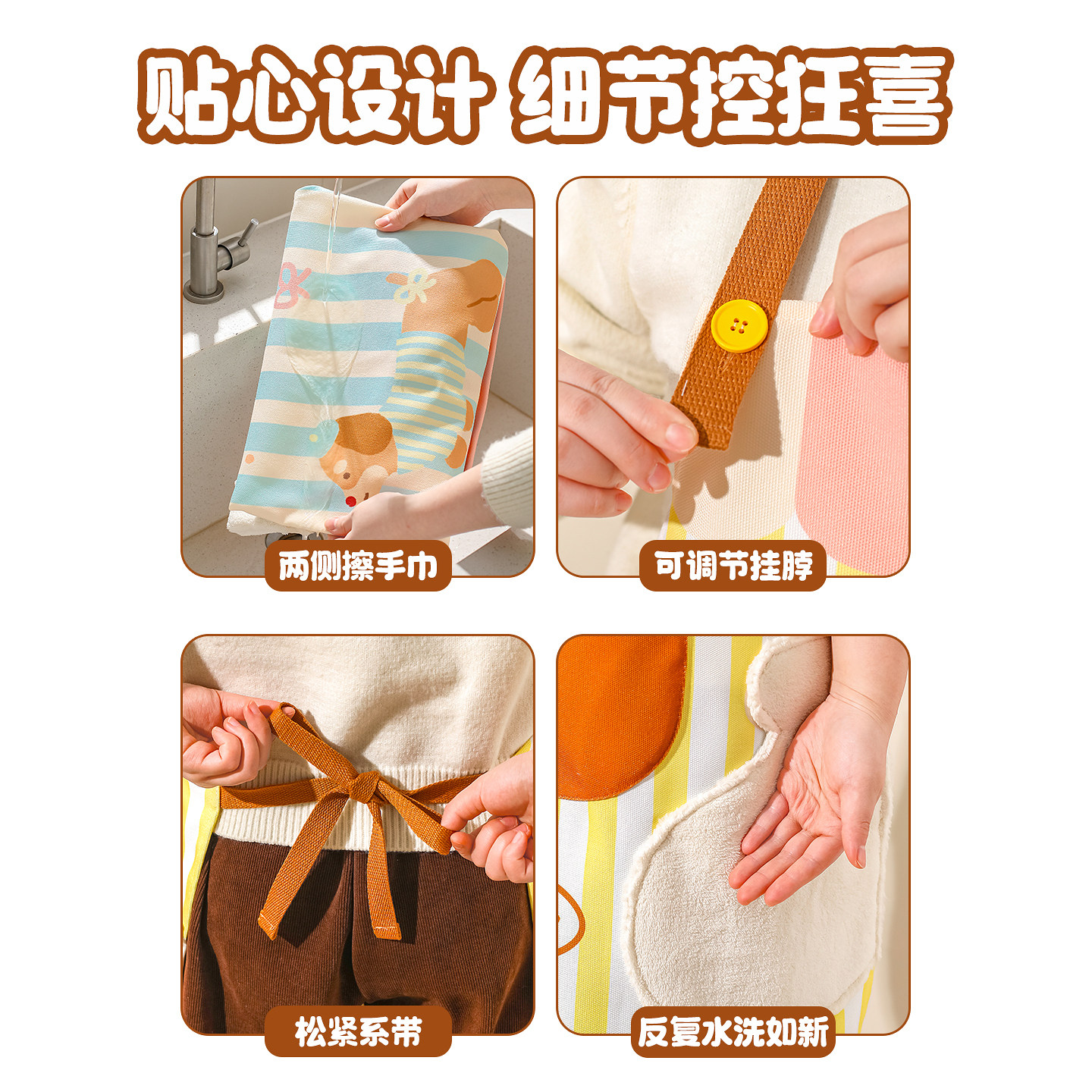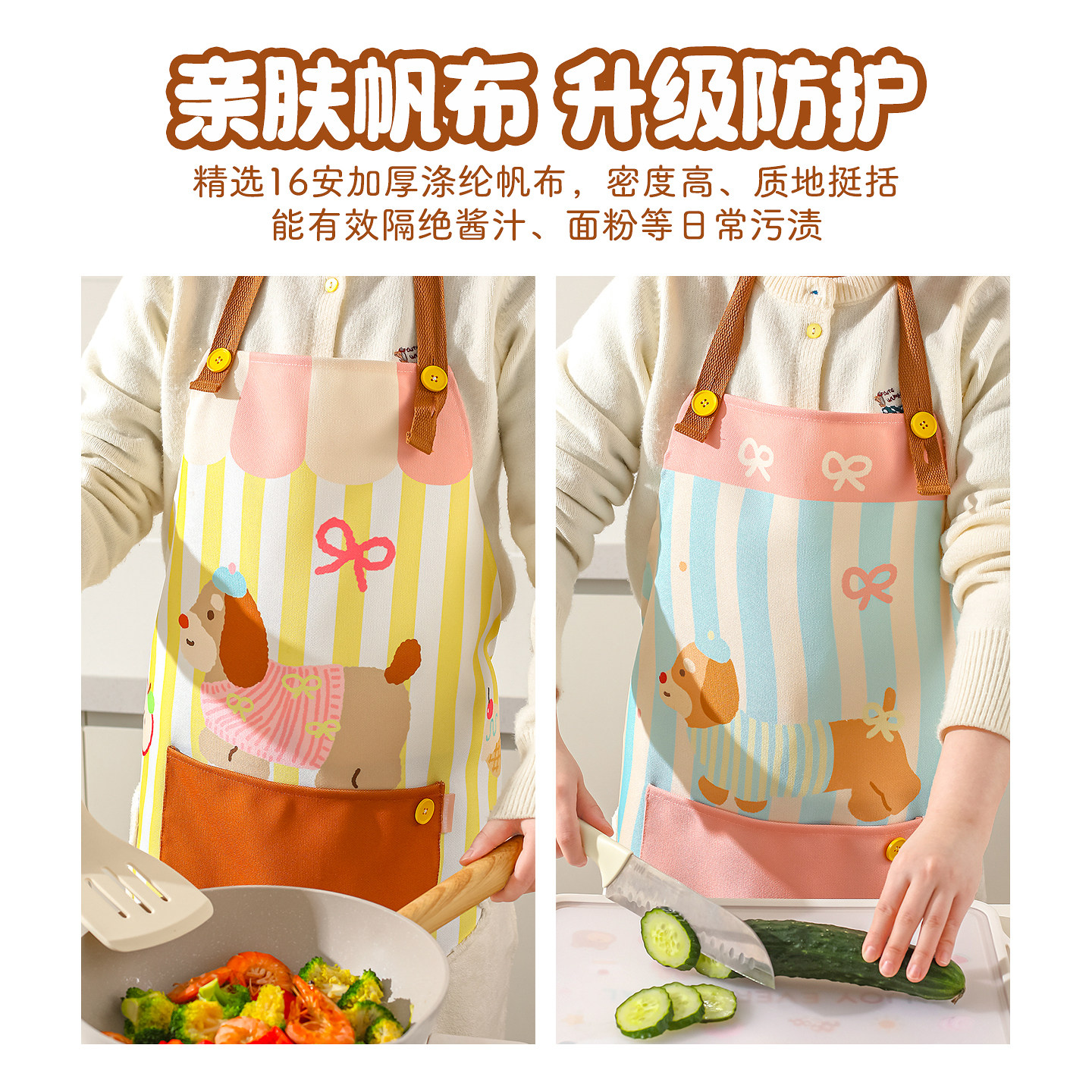 原创设计/亲肤帆布/口袋收纳/两侧擦手