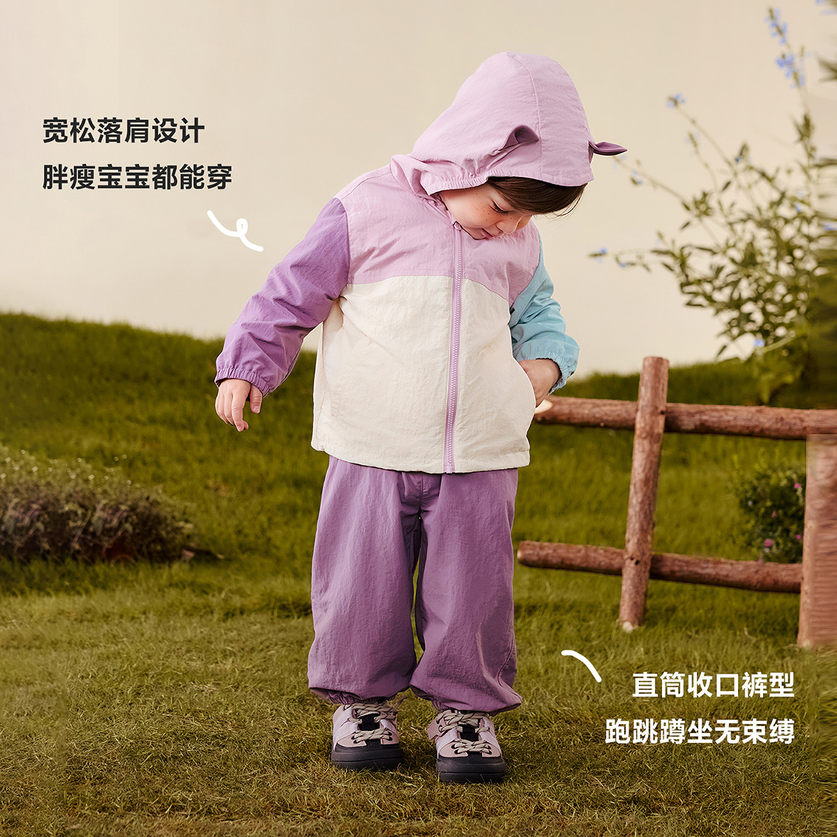 迷你巴拉巴拉男女童连帽外套长袖套装拼色户外风两件套春新品
