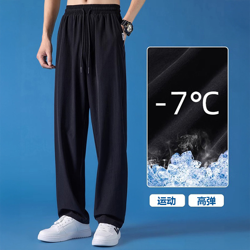 冰丝裤男裤春夏薄款直筒宽松高弹速干空调裤运动防晒休闲长裤黑色