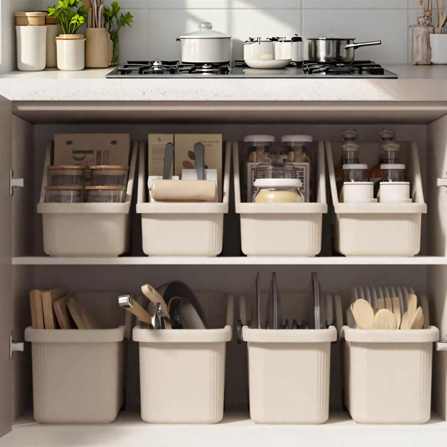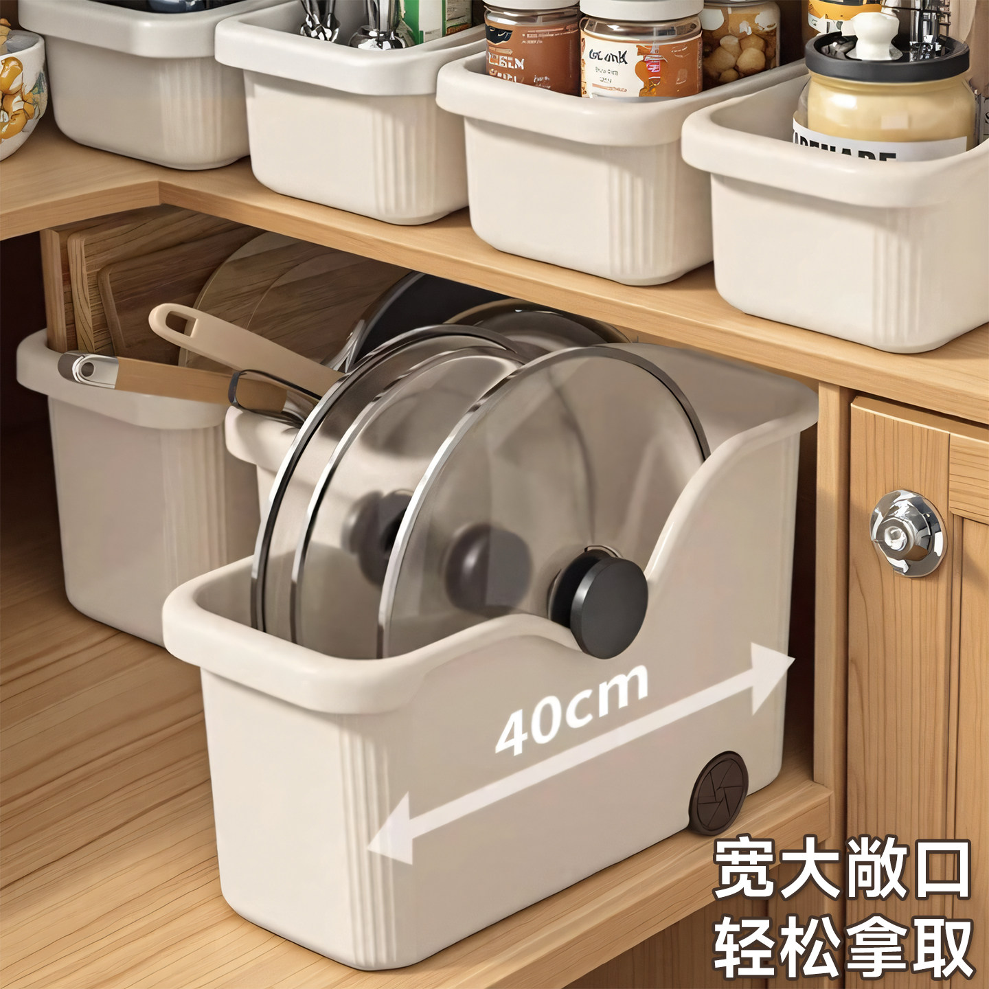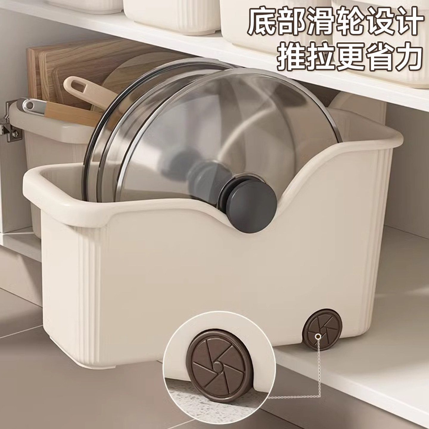 厨房锅具收纳盒整理盒锅盖调料带滑轮下水槽橱柜收纳多功能收纳箱