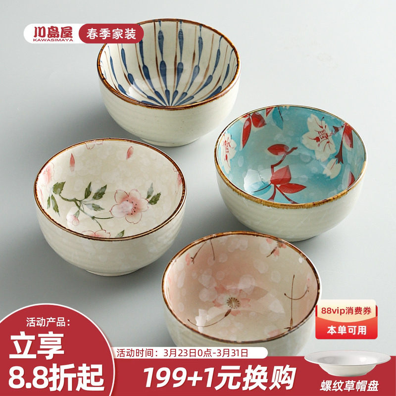 川岛屋日式餐具陶瓷碗家用5寸米饭碗个人专用特别好看的饭碗套装
