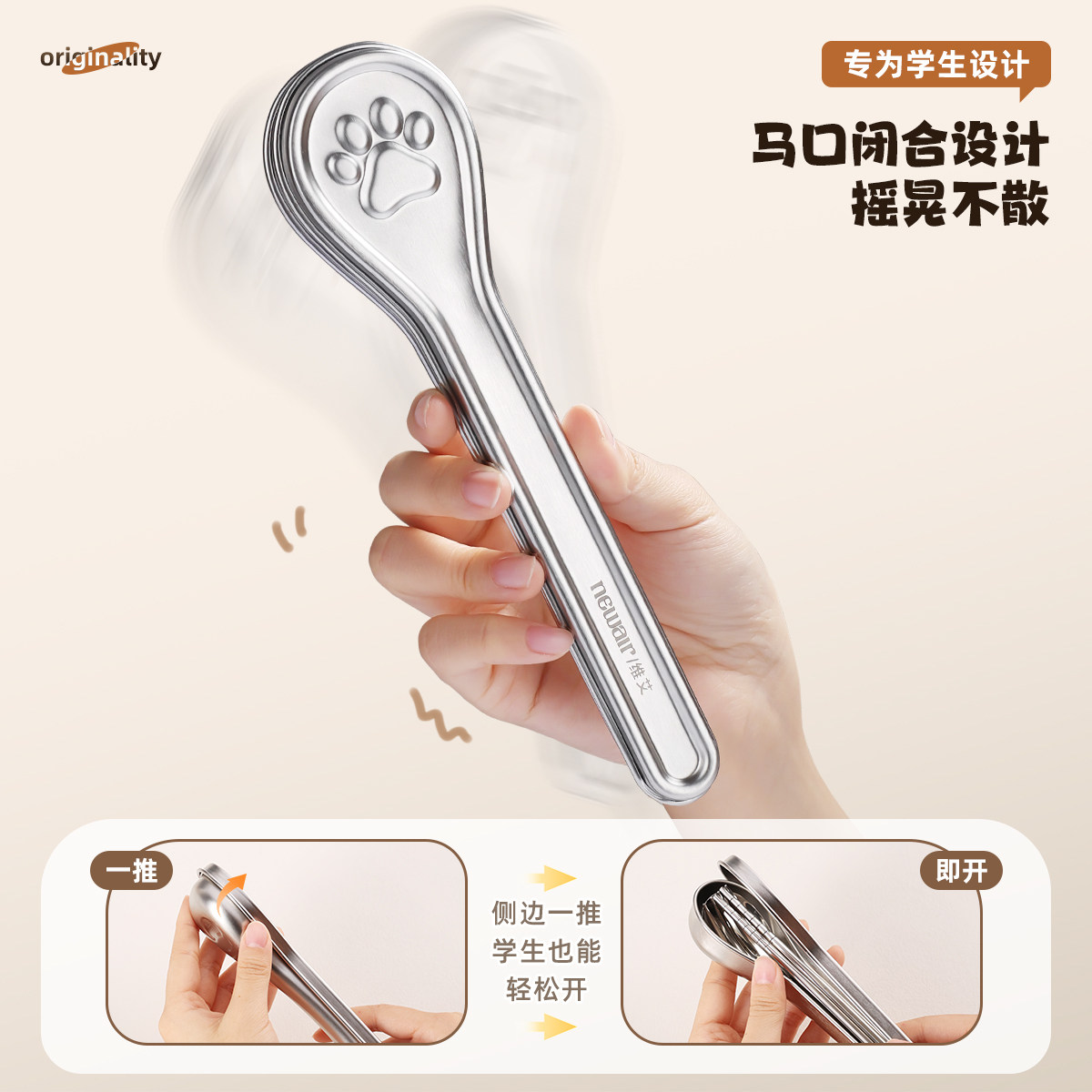 316不锈钢筷子勺子套装一人用便携盒三件套收纳盒304餐具学生套装