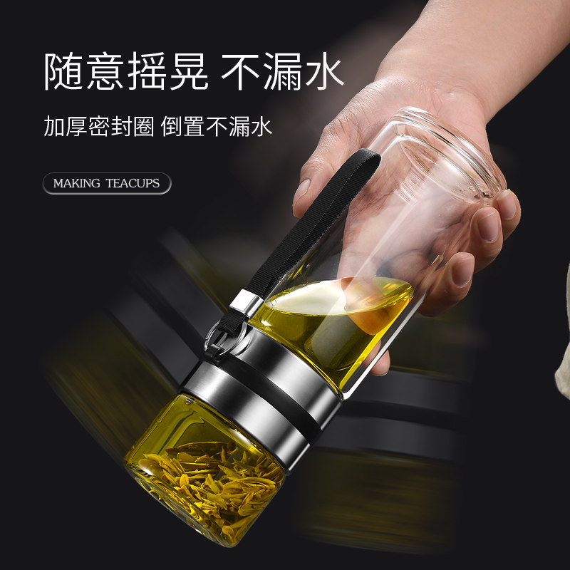 大容量茶水分离杯泡茶杯杯子女个人双层玻璃水杯男高硼硅提绳喝茶