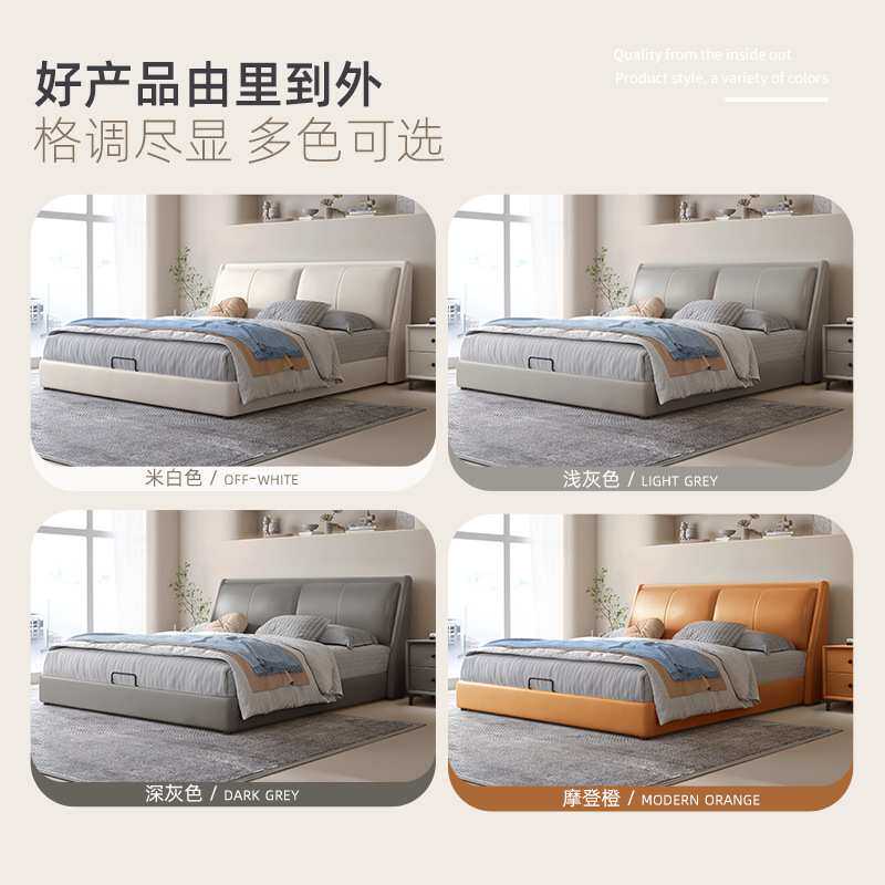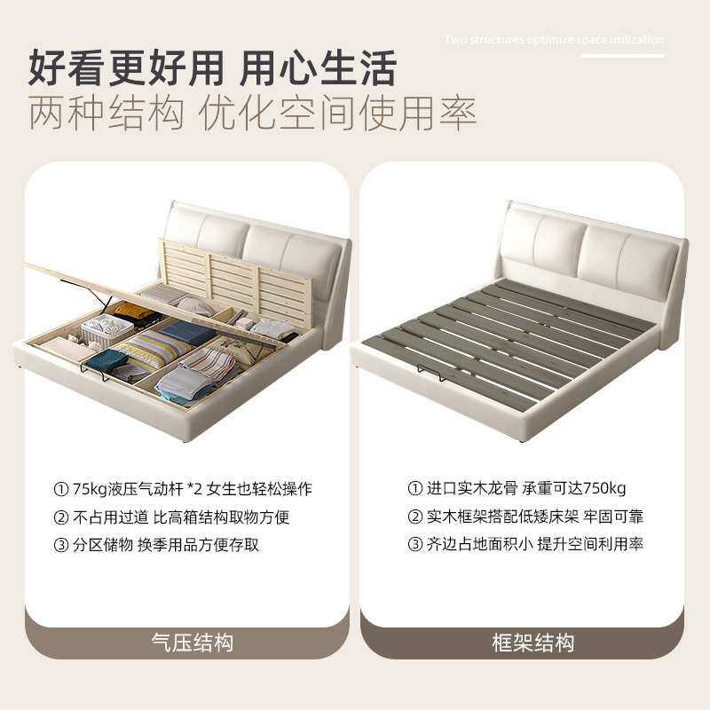 2024新款网红软包床真皮床实木婚床可储物1.8m双人卧室家用皮艺床