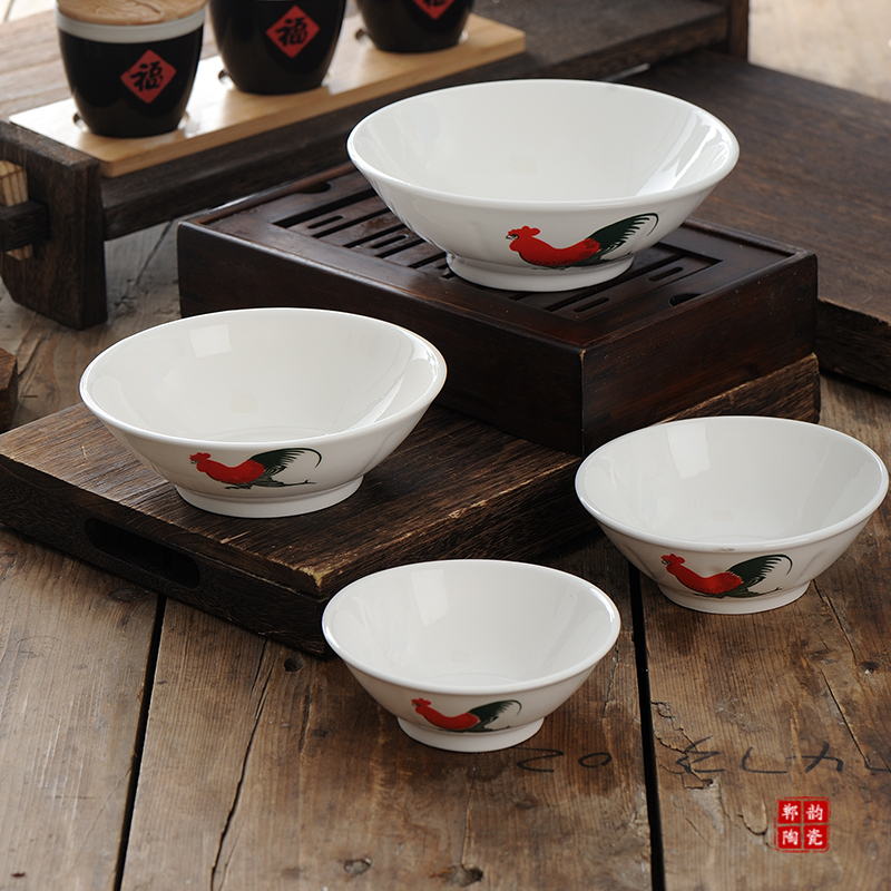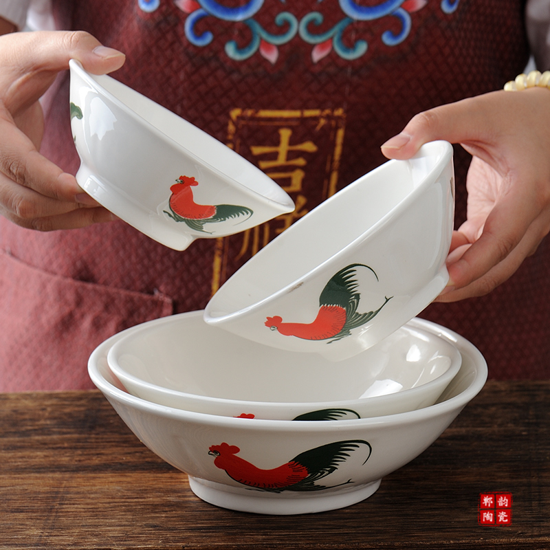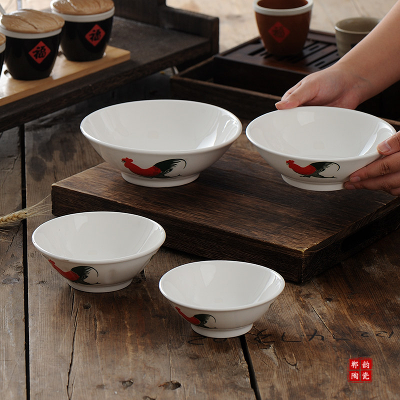 陶瓷中式国潮鸡公碗斗笠怀旧经典老式公鸡斗碗面碗早餐复古道具