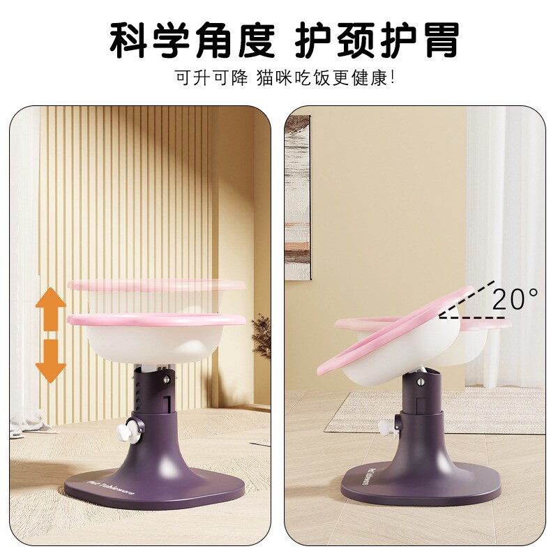 猫碗猫食盆高脚大口径可调升降护颈宠物猫狗碗斜口防打翻喂食器