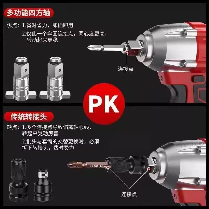 通用四方轴强磁批头转接头电板多功能万能工具电动扳手配件大全