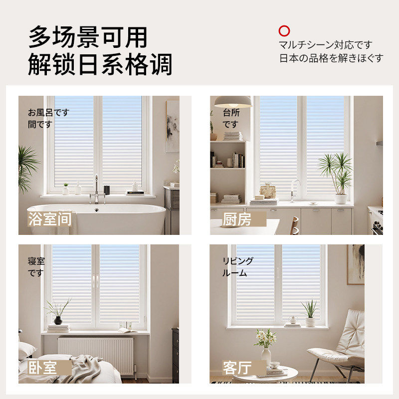 百叶窗贴纸防窥防走光浴室卫生间玻璃膜透光不透明静电磨砂窗户贴