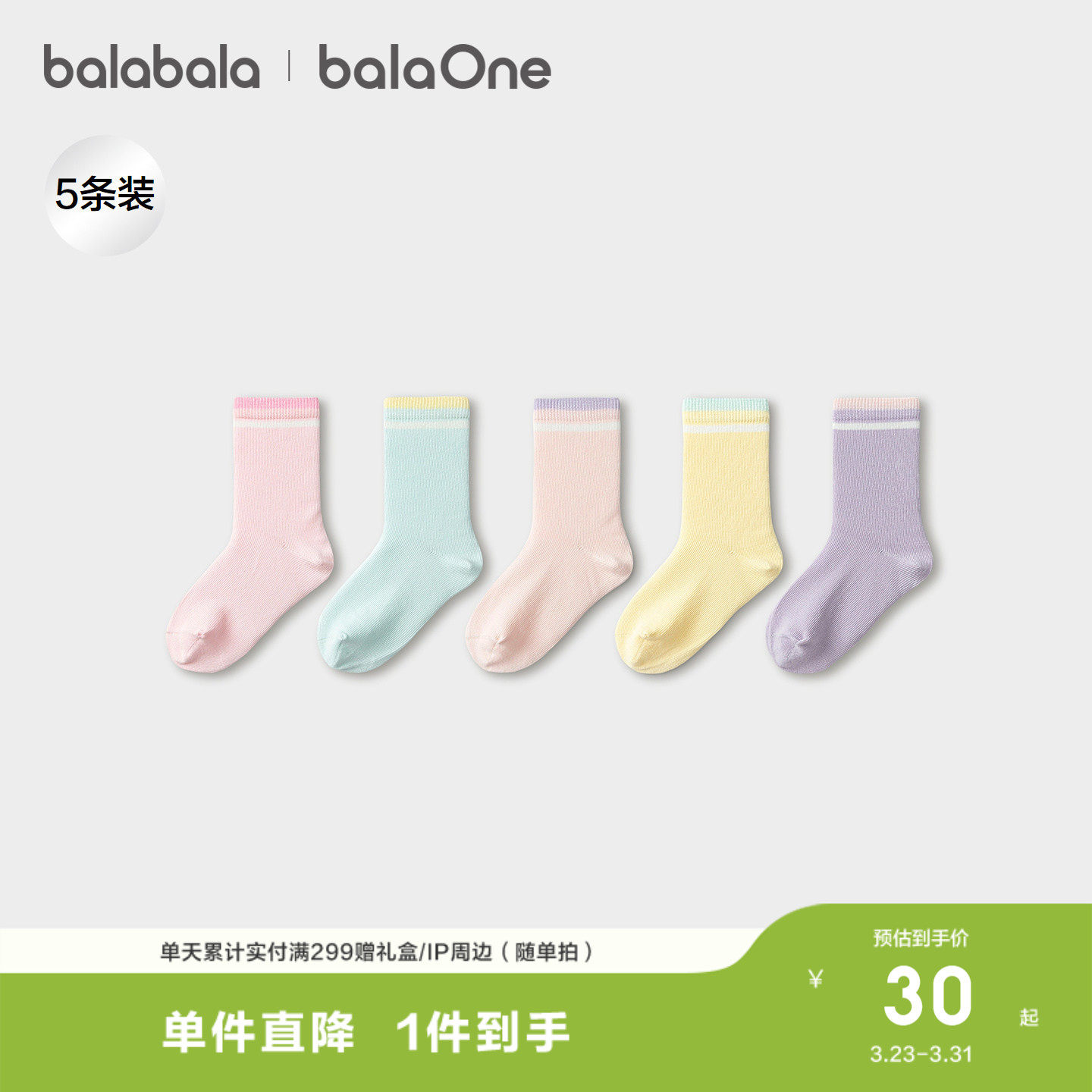 巴拉巴拉儿童袜子春秋男童女童棉袜儿童宝宝中大童学生打底五双装