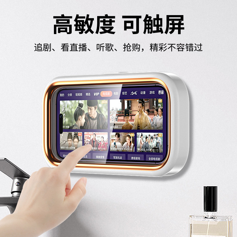 可伸缩旋转】浴室防水手机盒洗澡看电视懒人支架厕所追剧神器放卫生间淋浴房手机架挂墙壁贴墙面墙上免打孔