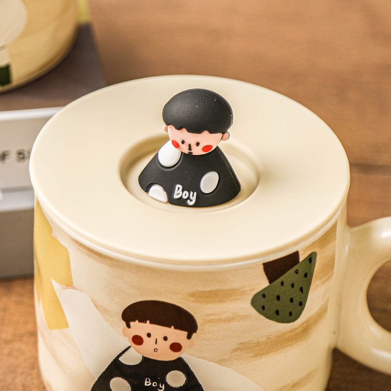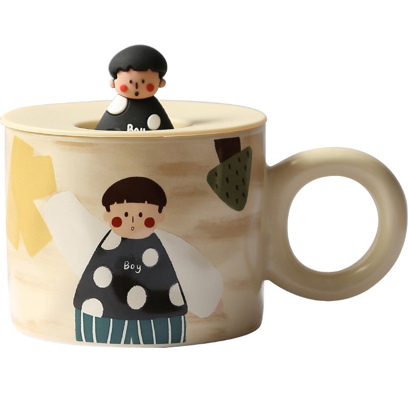 趣皿可爱马克杯卡通带盖带勺陶瓷杯情侣水杯咖啡杯子送女生伴手礼